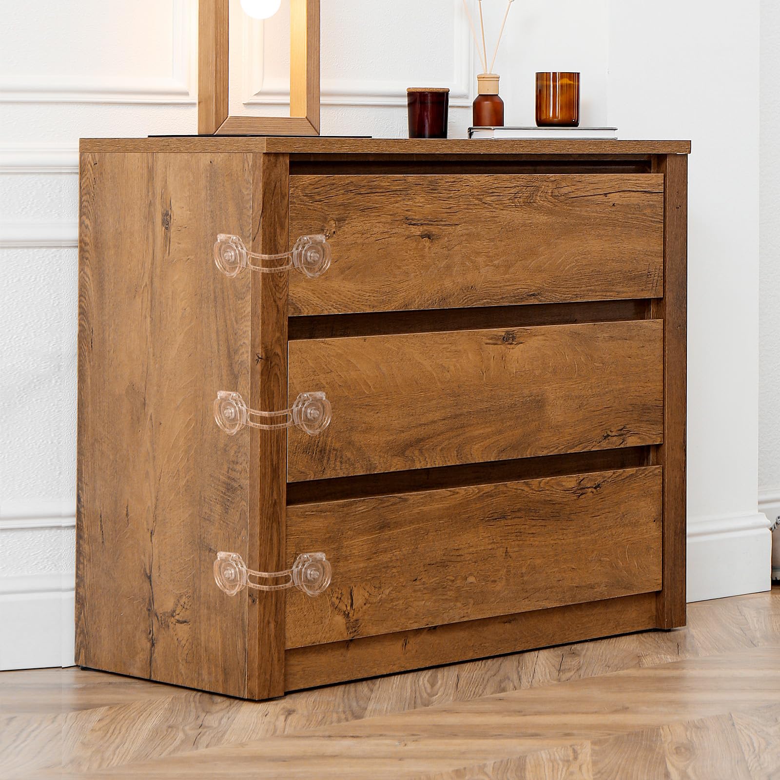 AiQInu child safety locks for cabinets and drawers, transparent, 9 pcs