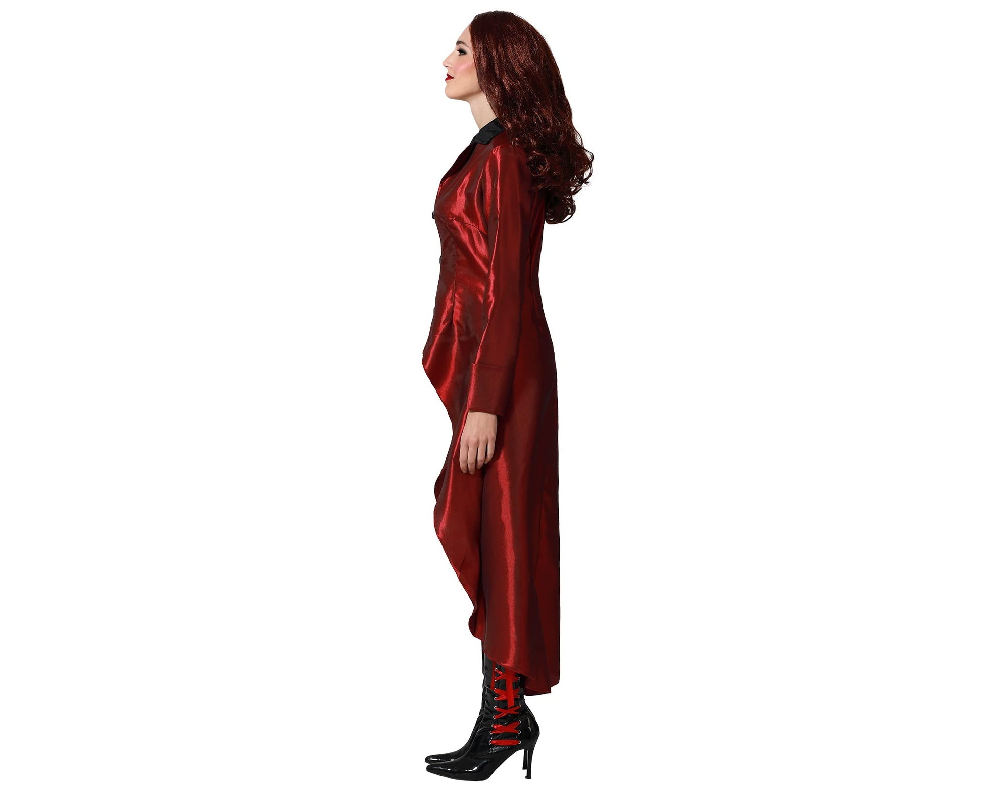 Naiste punane superkangelase kostüüm, pikk jakk, karnevaliks ja cosplayks
