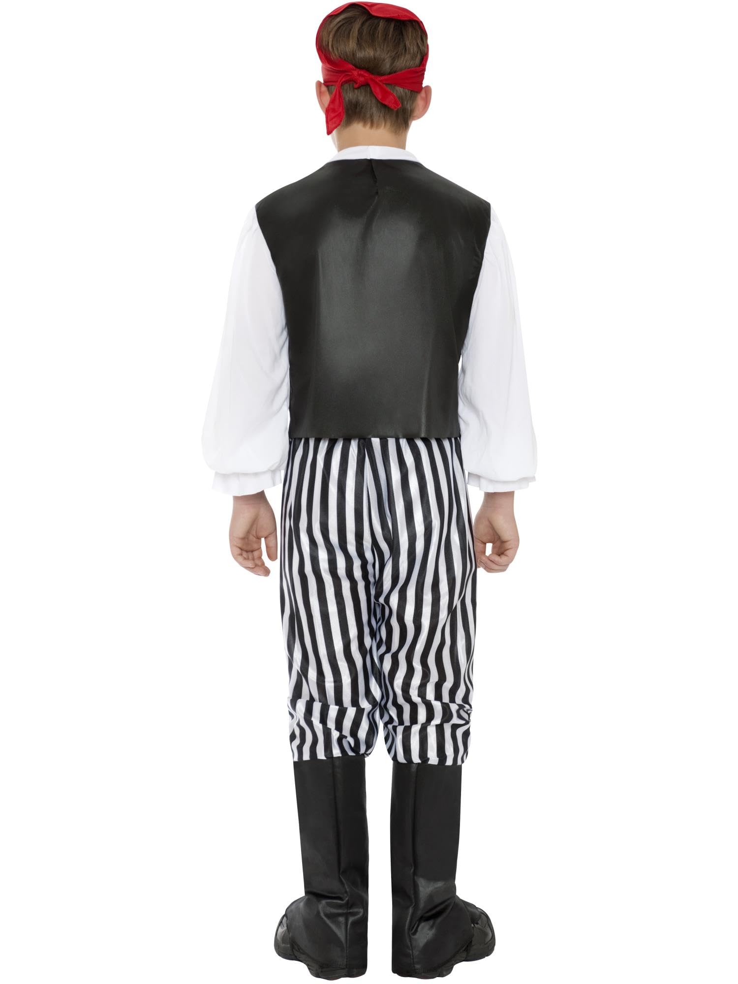 The Smiffys pirate costume offers little adventurers true role-playing fun. The set includes a black and white shirt, pants, a pair of boot covers, a headband, and a belt – everything needed to become a pirate. The costume is made of high-quality polyester and meets children's nightwear safety standards (EN71), ensuring safe wear. Ideal for Halloween, carnival, or themed parties.