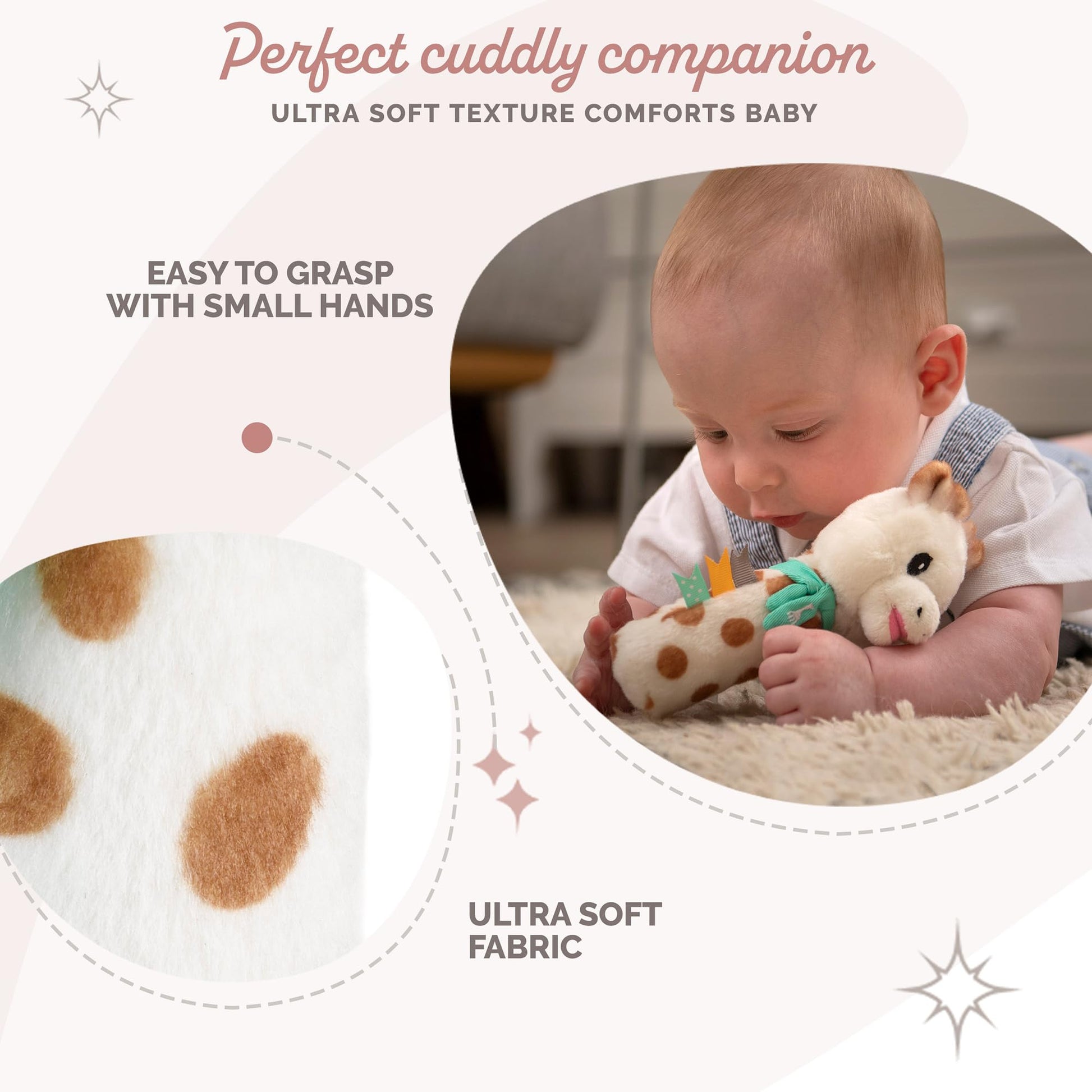 Sophie la girafe Sweetie Pouet on armas ja pehme kõrinamänguasi, mis pakub beebile mitmekülgset meelelist kogemust. Kui pigistada Sophie keha, teeb see õrna „piiksu“ heli, ja tema pea sees olev kelluke heliseb liigutamisel. Tänu oma kergesti haaratavale kujule sobib mänguasi ideaalselt väikestele kätele ning aitab arendada kuulmis-, kompimis- ja motoorseid oskusi. Valmistatud turvalistest materjalidest ja sobib alates sünnist.