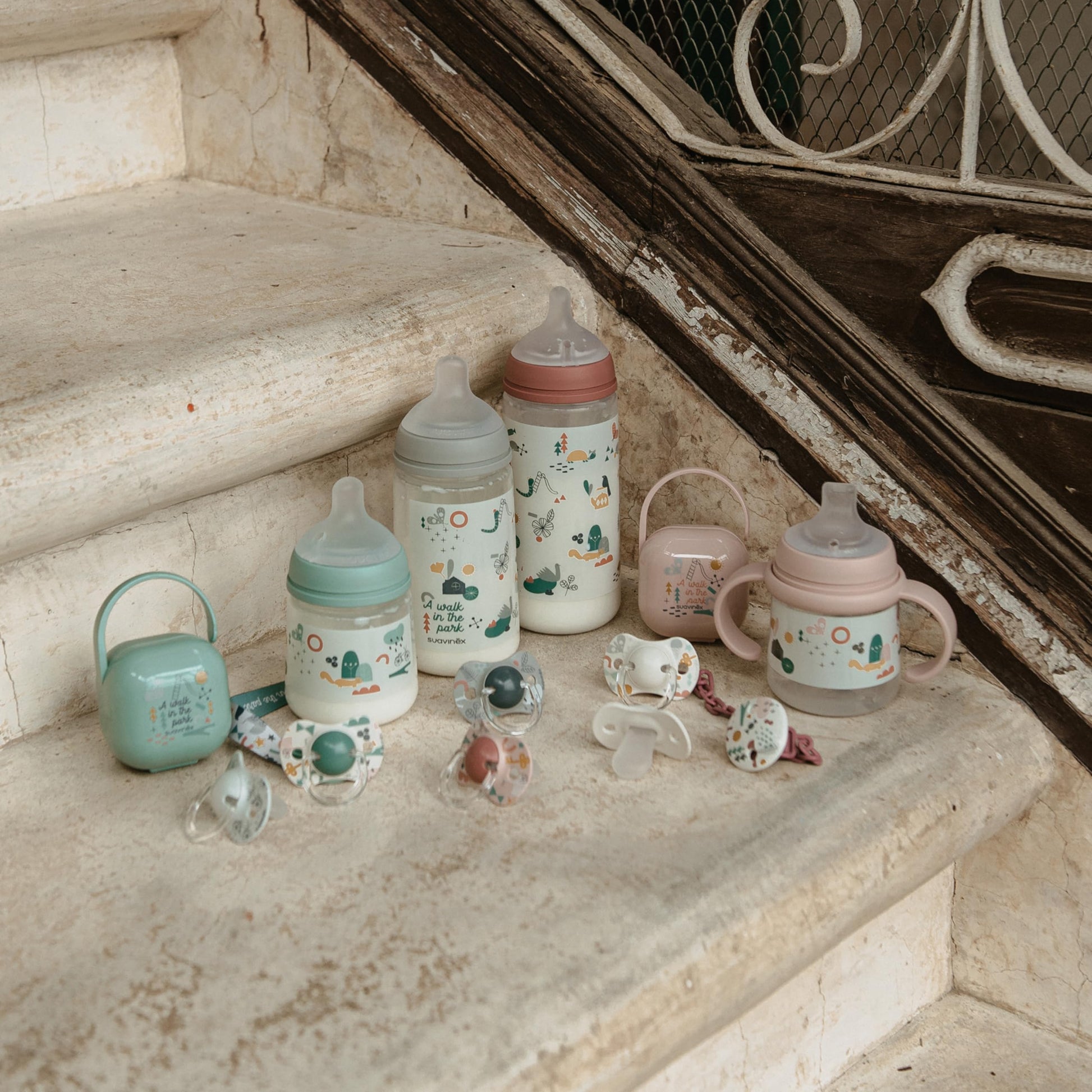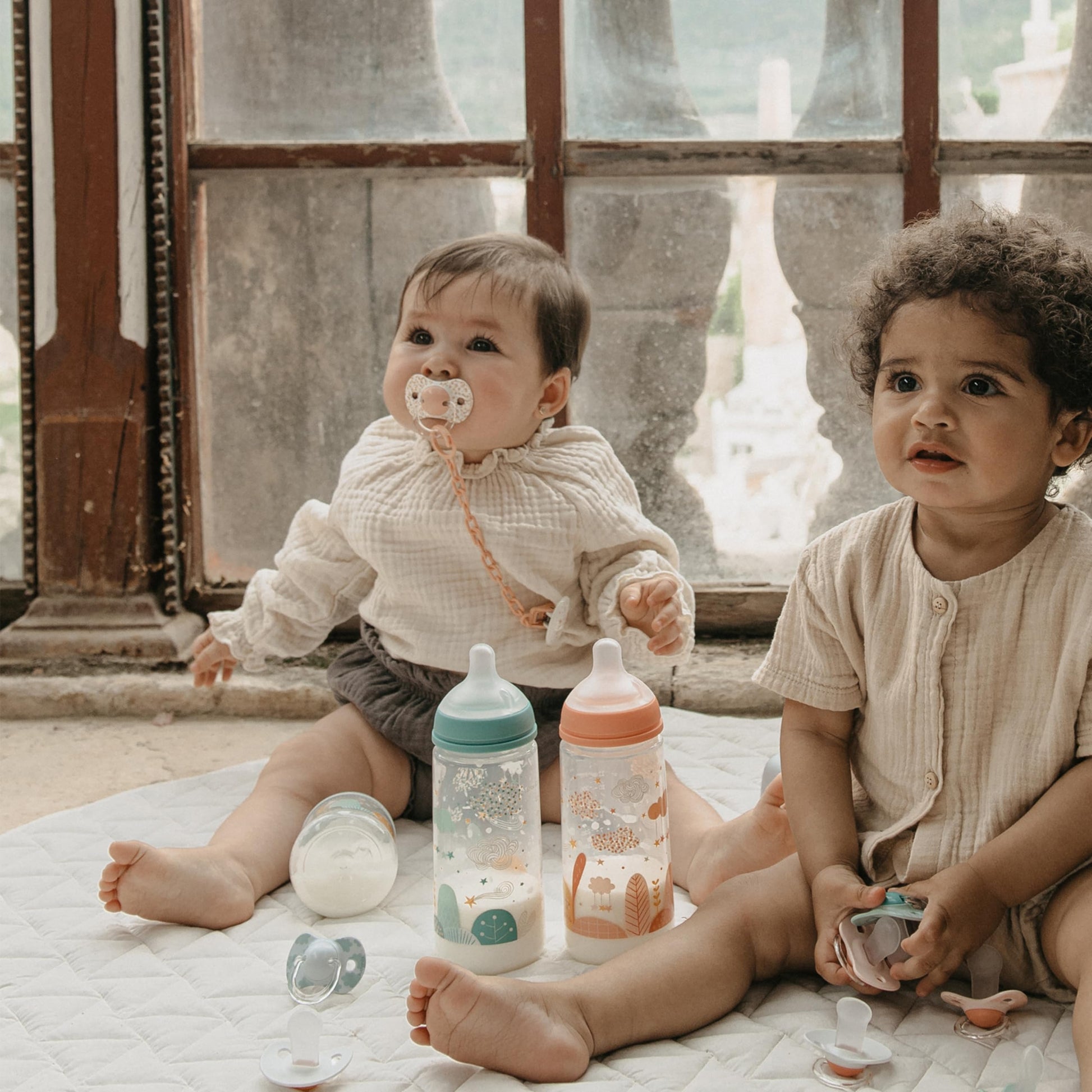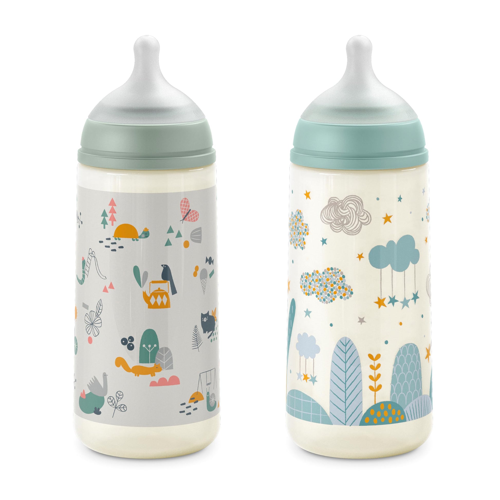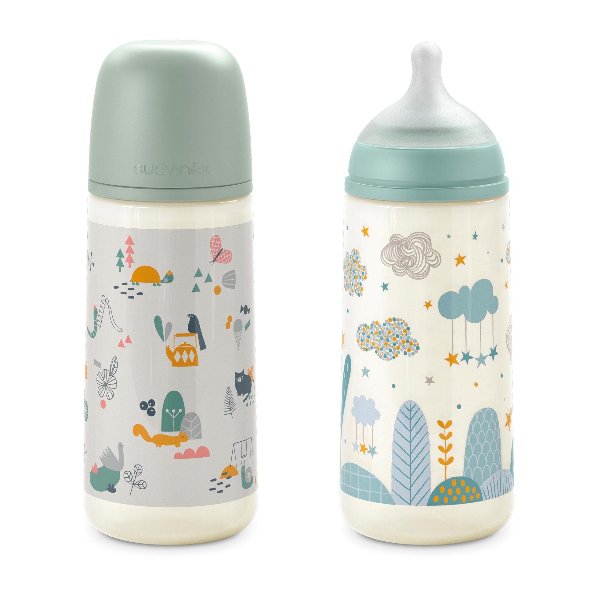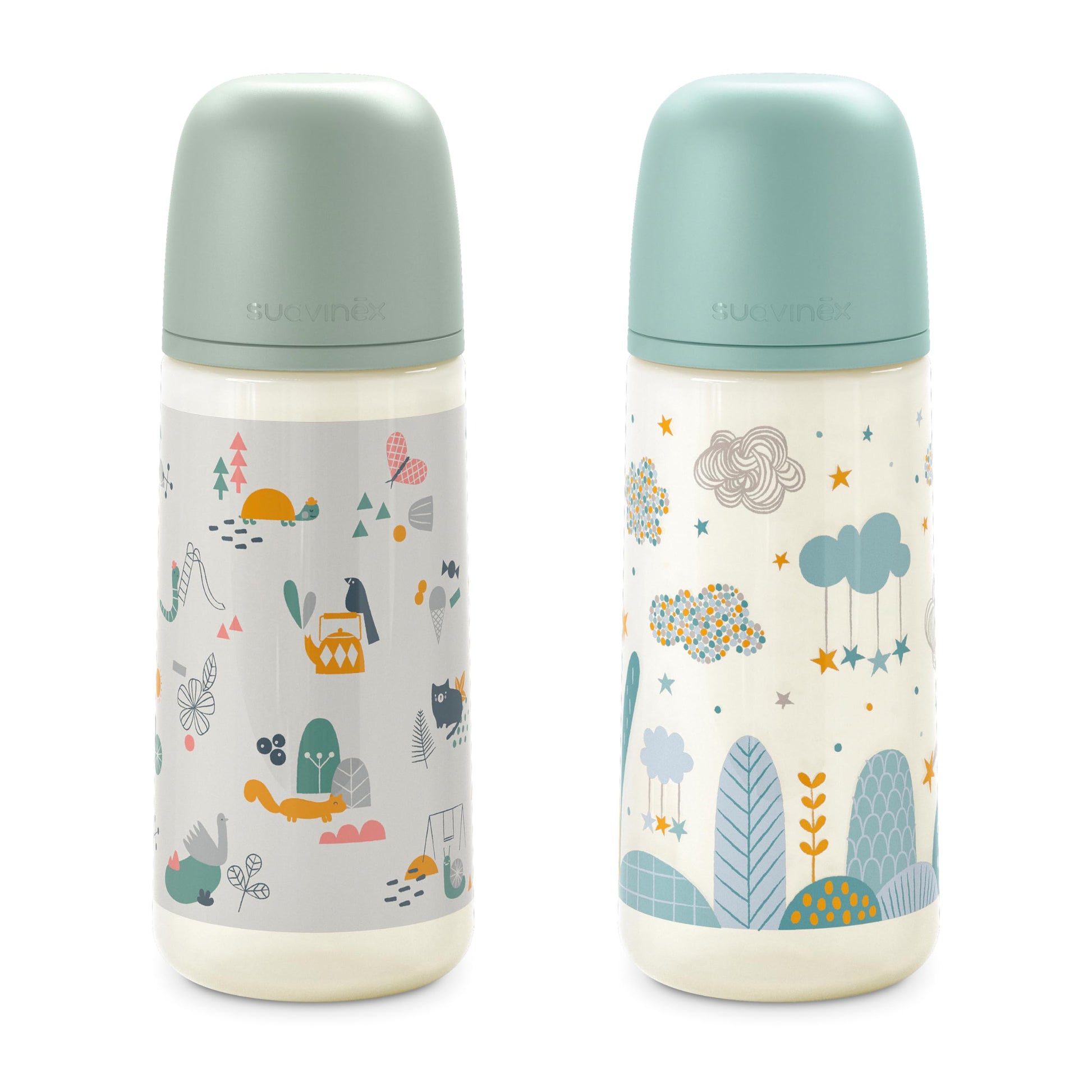 Suavinex 2-osaline komplekt – koolikute vastased beebipudelid 360 ml, sinine ja roheline
