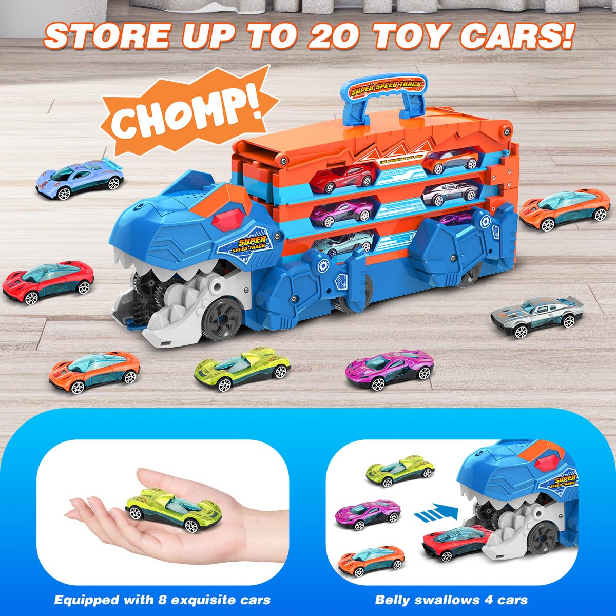3-in-1 Dinosauruseteemaline transpordiveok ja rallirada 8 mudelautoga