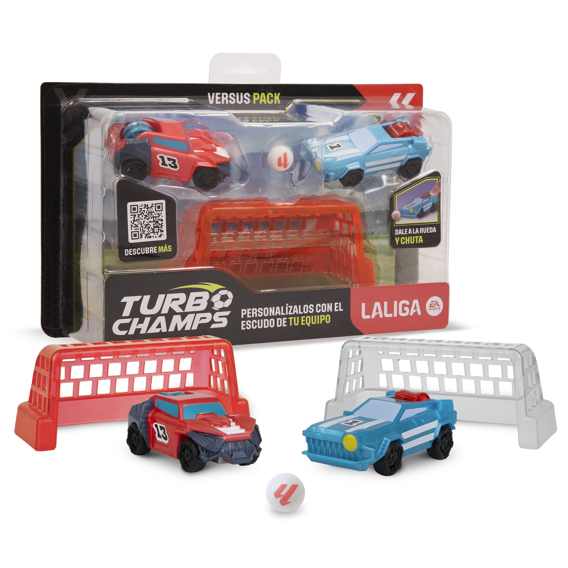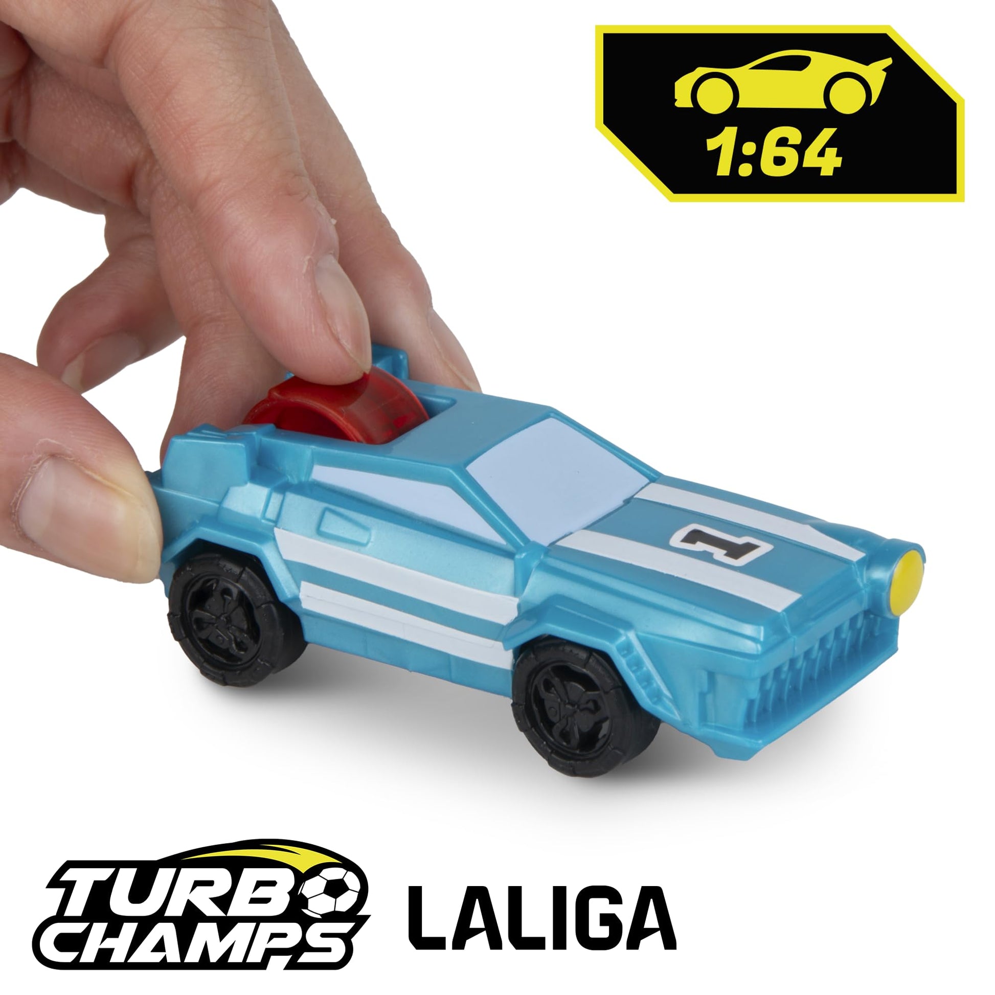 Turbo Champs LaLiga ühendab jalgpalli kirglikkuse ja võidusõidu põnevuse ühes mängus! Komplektis on kaks erilist autot, väravad ja pall, et pidada kaasahaaravaid 1:1 matše. Autod saab kiirendada kapotil asuvat ratast keerates ning kleebiste abil kujundada oma lemmikmeeskonna välimus. Lõbus ja interaktiivne mäng sobib kõigile LaLiga fännidele ja kiirusearmastajatele alates 6. eluaastast.