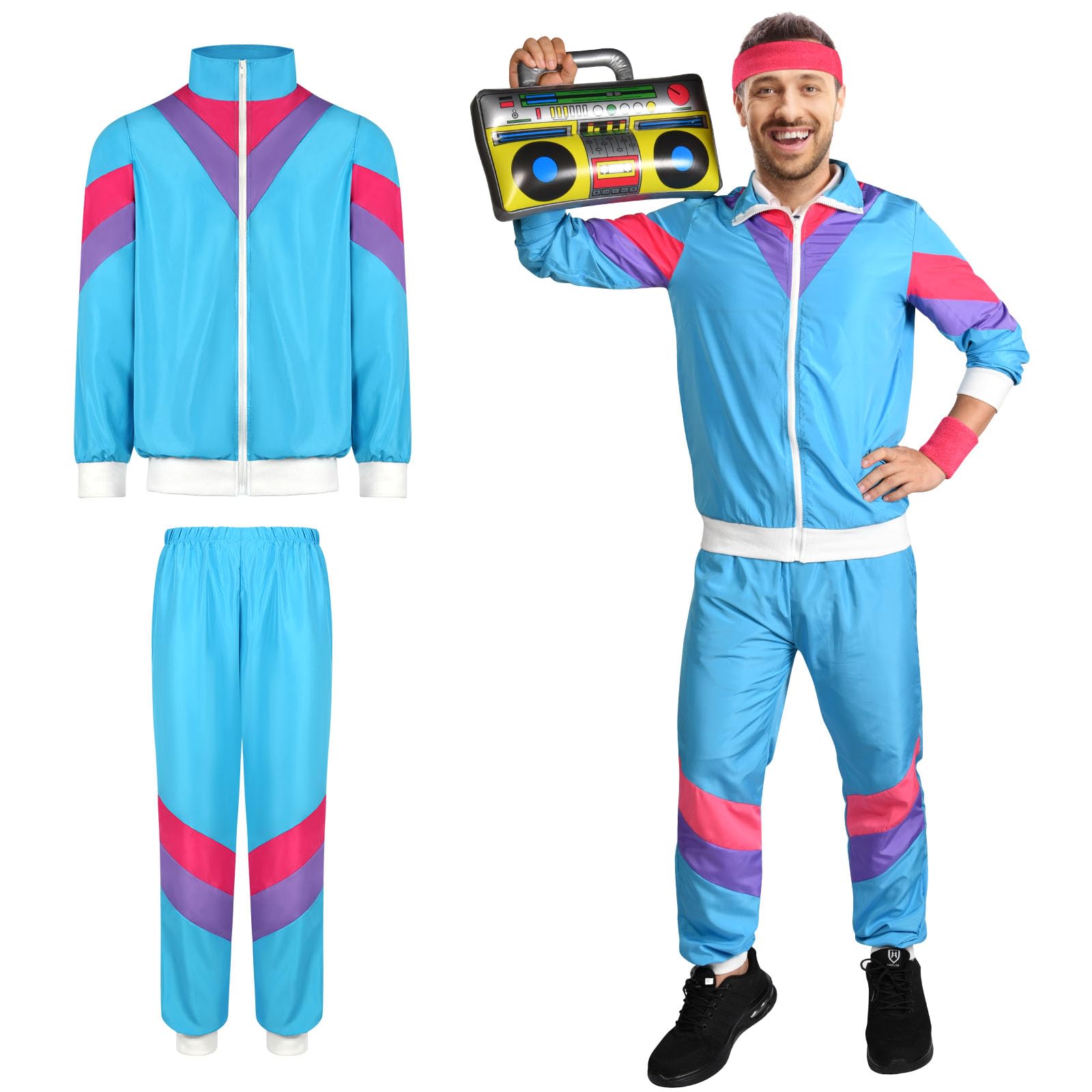 80ndate retro dressipluusi ja pükste kostüüm, unisex, sinine (S/M)