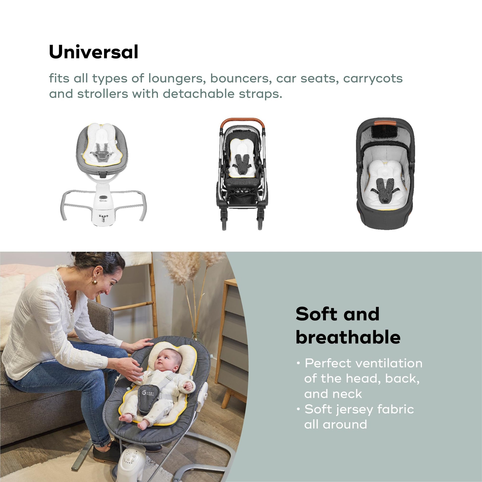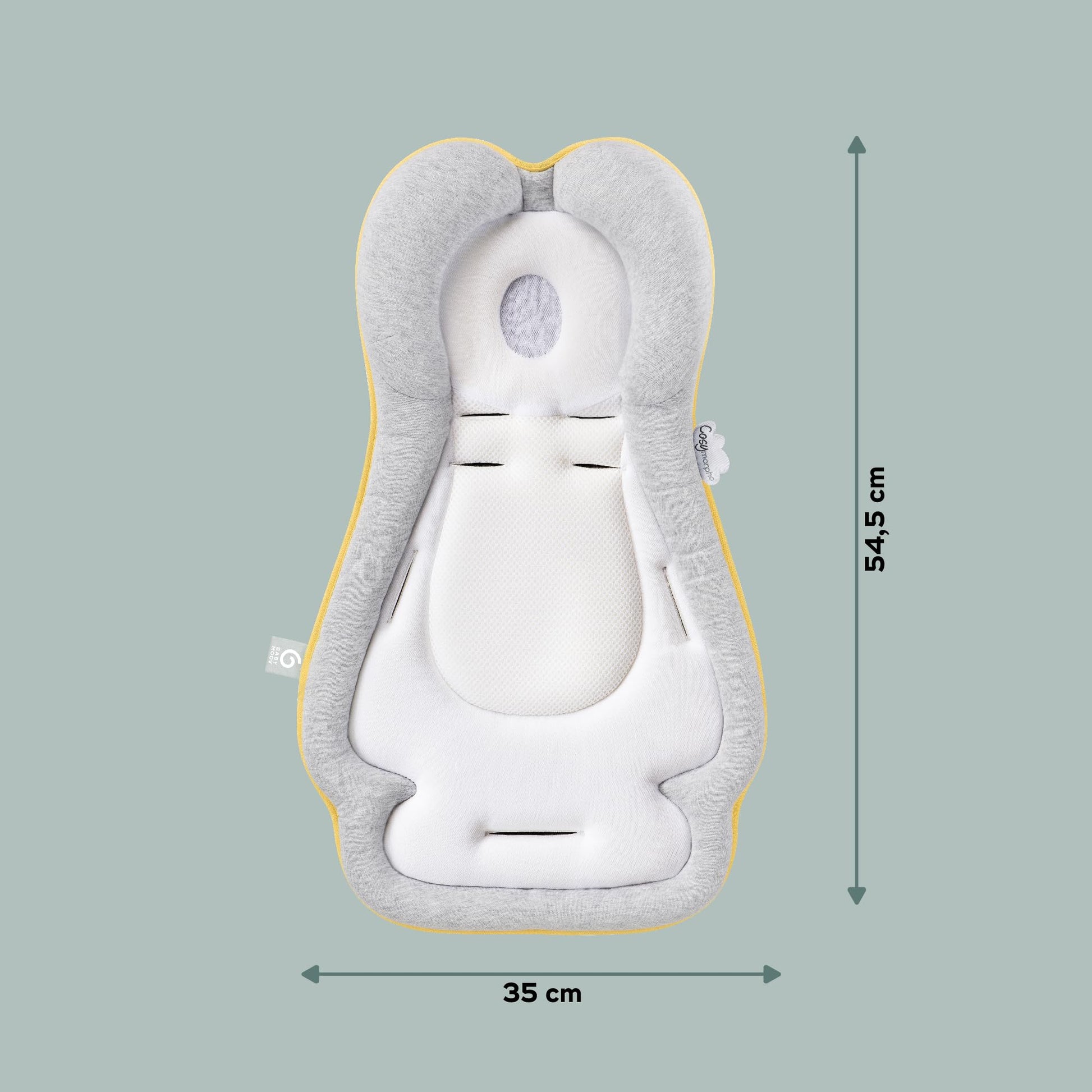 Babymoov Cosymorpho Fresh tagab vastsündinule ergonoomilise ja turvalise lamamisasendi igas keskkonnas – autos, vankris, lamamistoolis või hällis. Pehme mäluvahust sisu kohandub beebi kehakujuga, vähendades survet seljale ja pakkudes maksimaalset mugavust. Sisseehitatud anatoomiline peatoe osa hoiab lapse pea loomuliku kujuga, samas kui hingav mikrokiust kate tagab hea õhuringluse. Kõrged polsterdatud servad loovad turvalise ja hubase pesaefekti, aidates beebil rahulikult magada ja puhata.