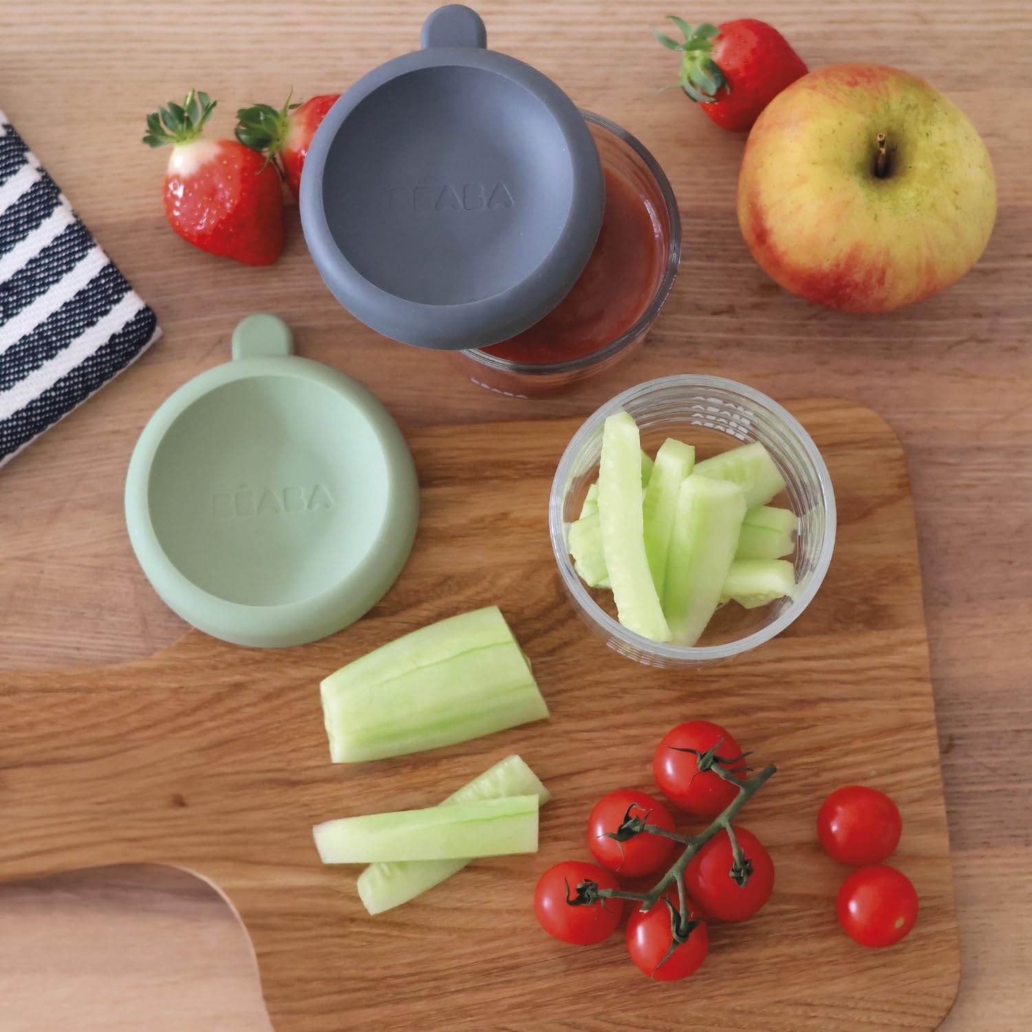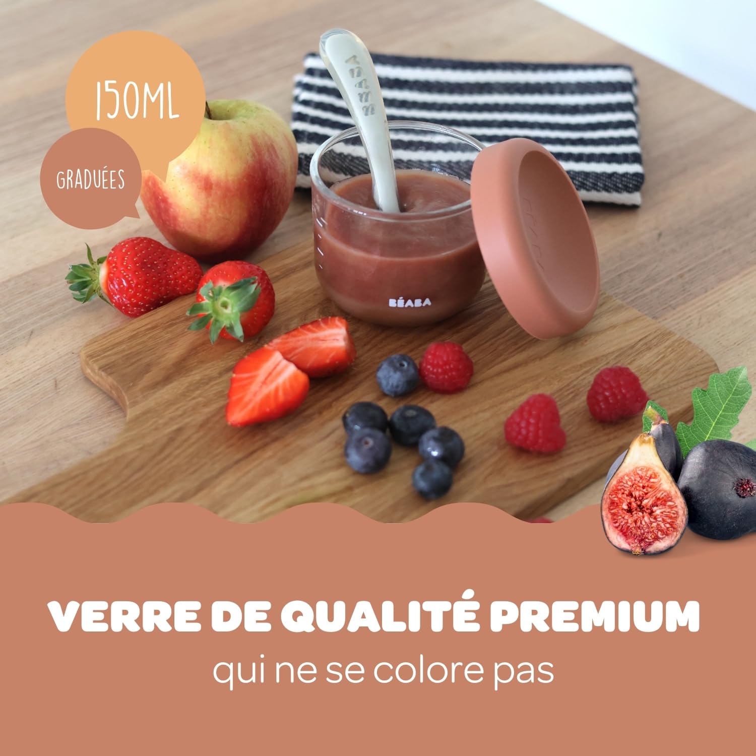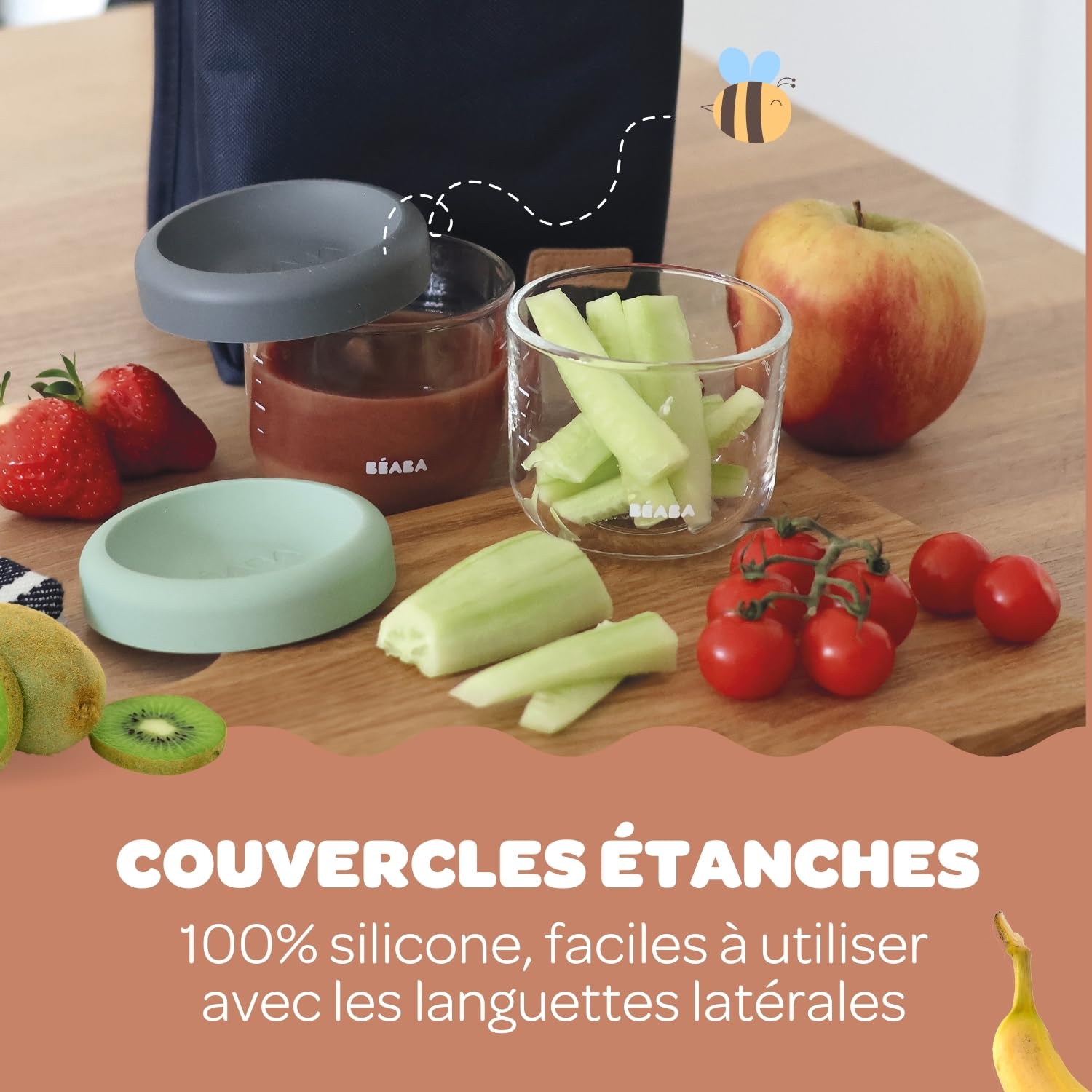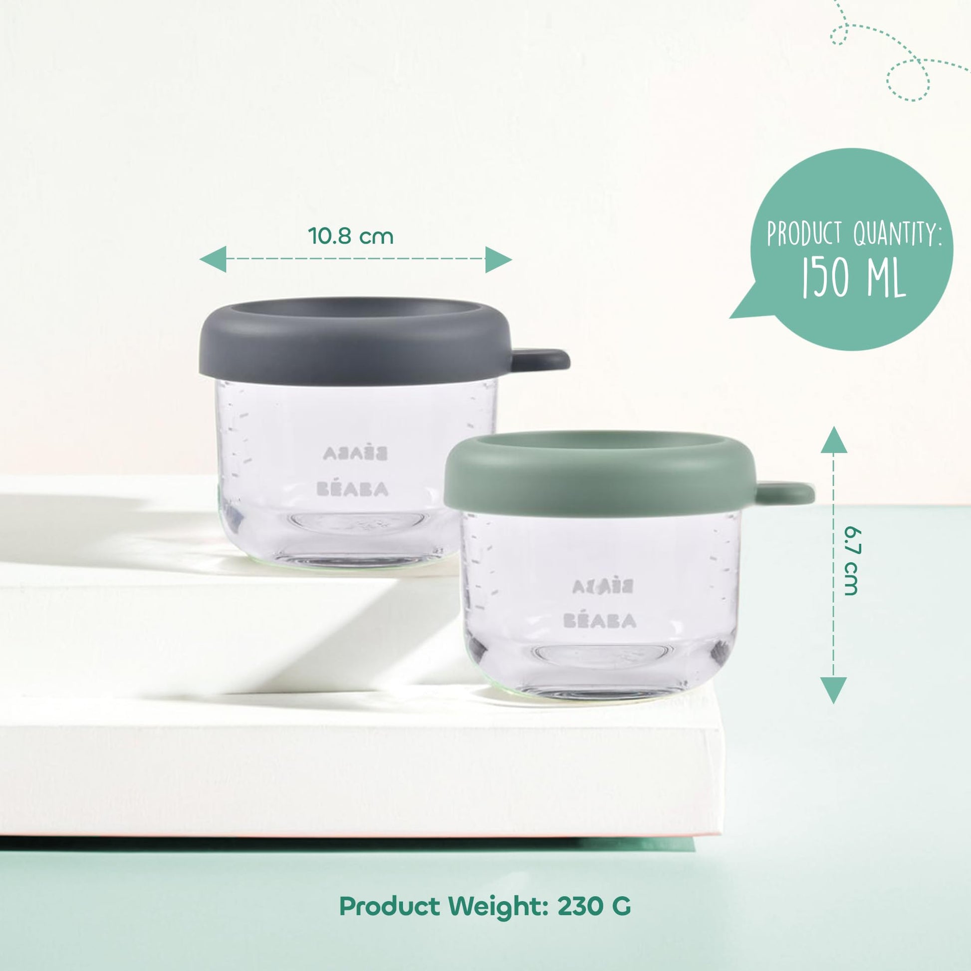 BÉABA klaasist beebitoidu säilitusnõude komplekt, 2 × 150 ml, salveiroheline/mineraal