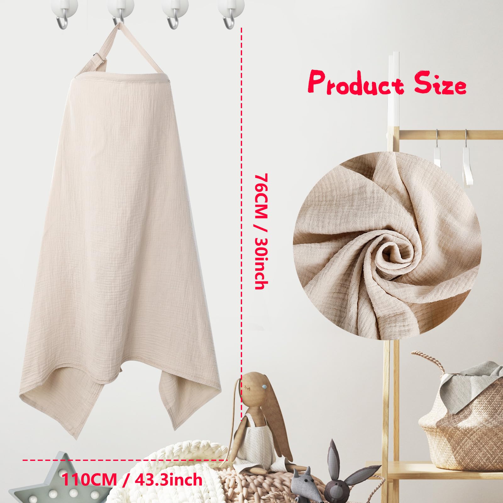 Cozary 100% puuvillane imetamislina, 76 × 110 cm, beež