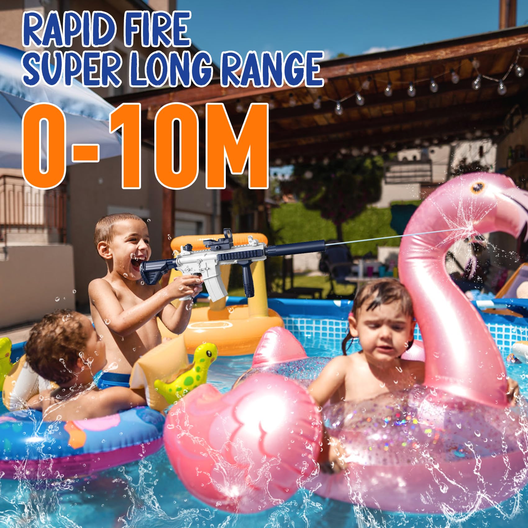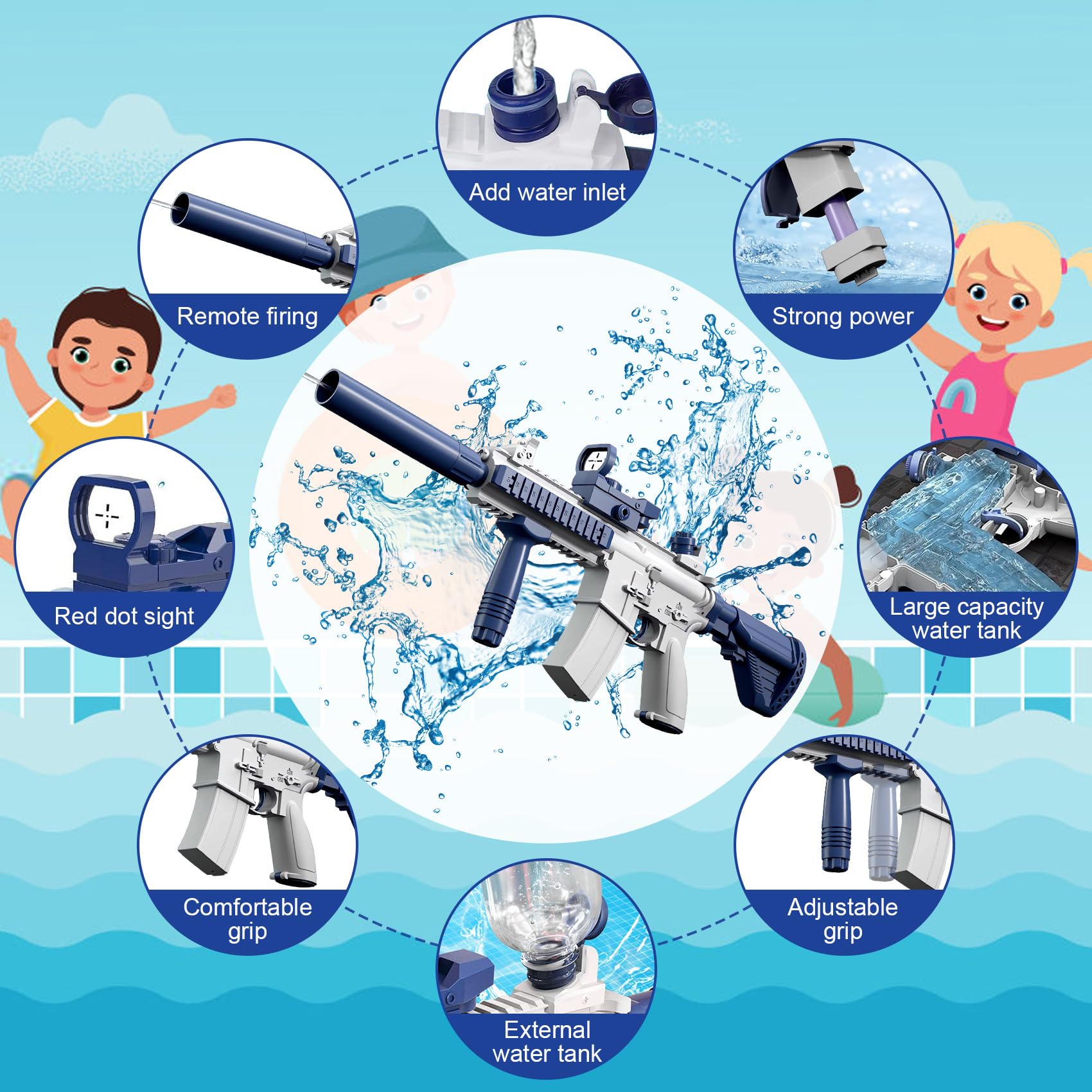 TTCOTOKE elektriline veepüstol muudab veelahingud lihtsaks ja lõbusaks – ühe nupuvajutusega saad pideva ja kiire veejoa. Veepüstol ühildub tavaliste pudeliavadega, et suurendada veemahutavust. Vastupidav konstruktsioon ja ohutu disain sobivad kasutamiseks nii rannas, basseinis kui ka koduaias.