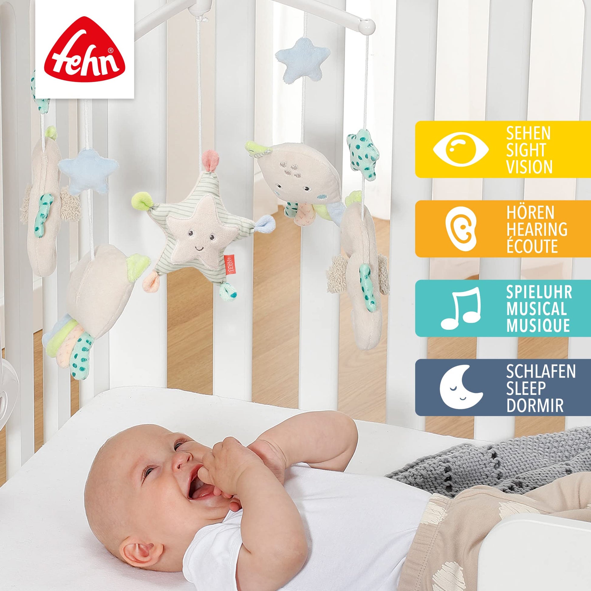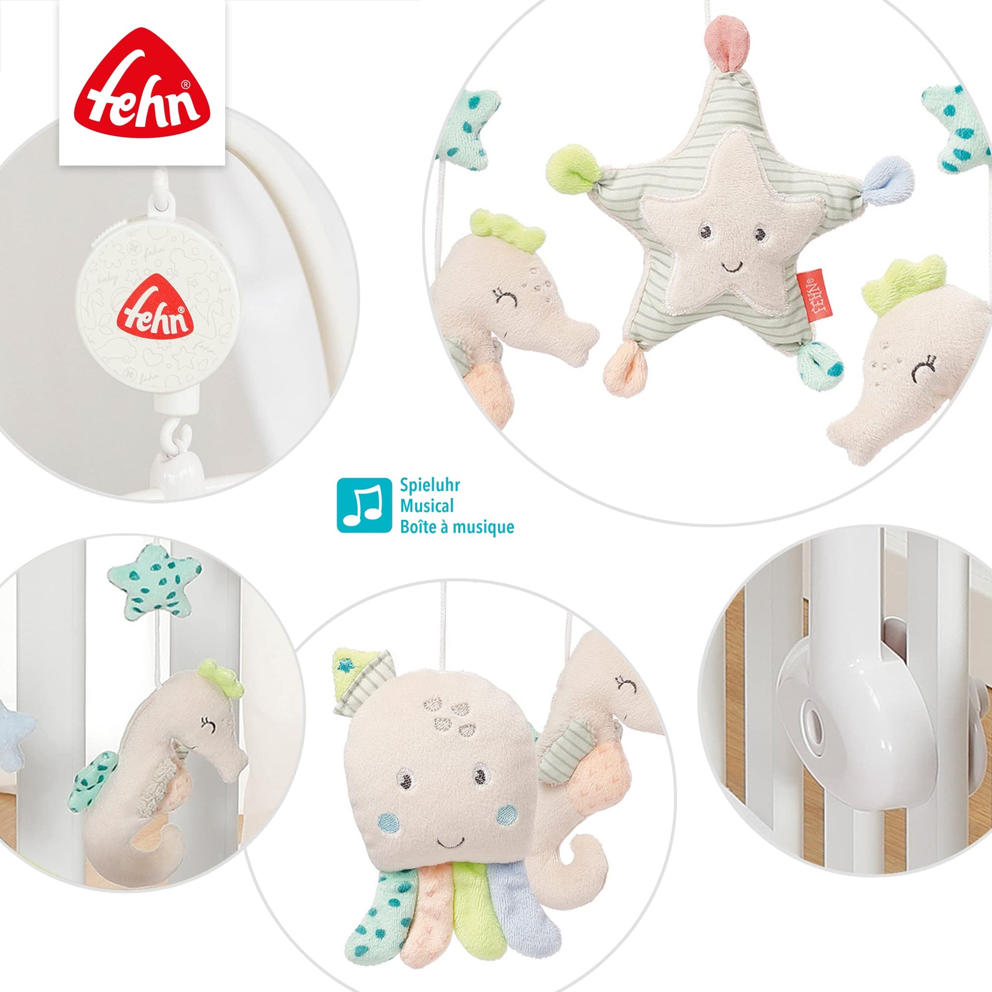 Fehn „Mere lapsed“ muusikaline mobiil toob beebituppa rahuliku ja mängulise meeleolu. Armaste mereelukatega mobiil pöörleb õrnalt meloodia „Schlaf Kindlein Schlaf“ saatel, köites beebi tähelepanu ja rahustades teda uneks. Mobiil on mehhaanilise muusikakastiga ning seda saab mugavalt sisse ja välja lülitada. Pehmed figuurid on eemaldatavad, et laps saaks nendega ka eraldi mängida, ning neid võib pesta temperatuuril kuni 30 °C. Lihtsasti voodile kinnitatav ja ideaalne kingitus vastsündinule.