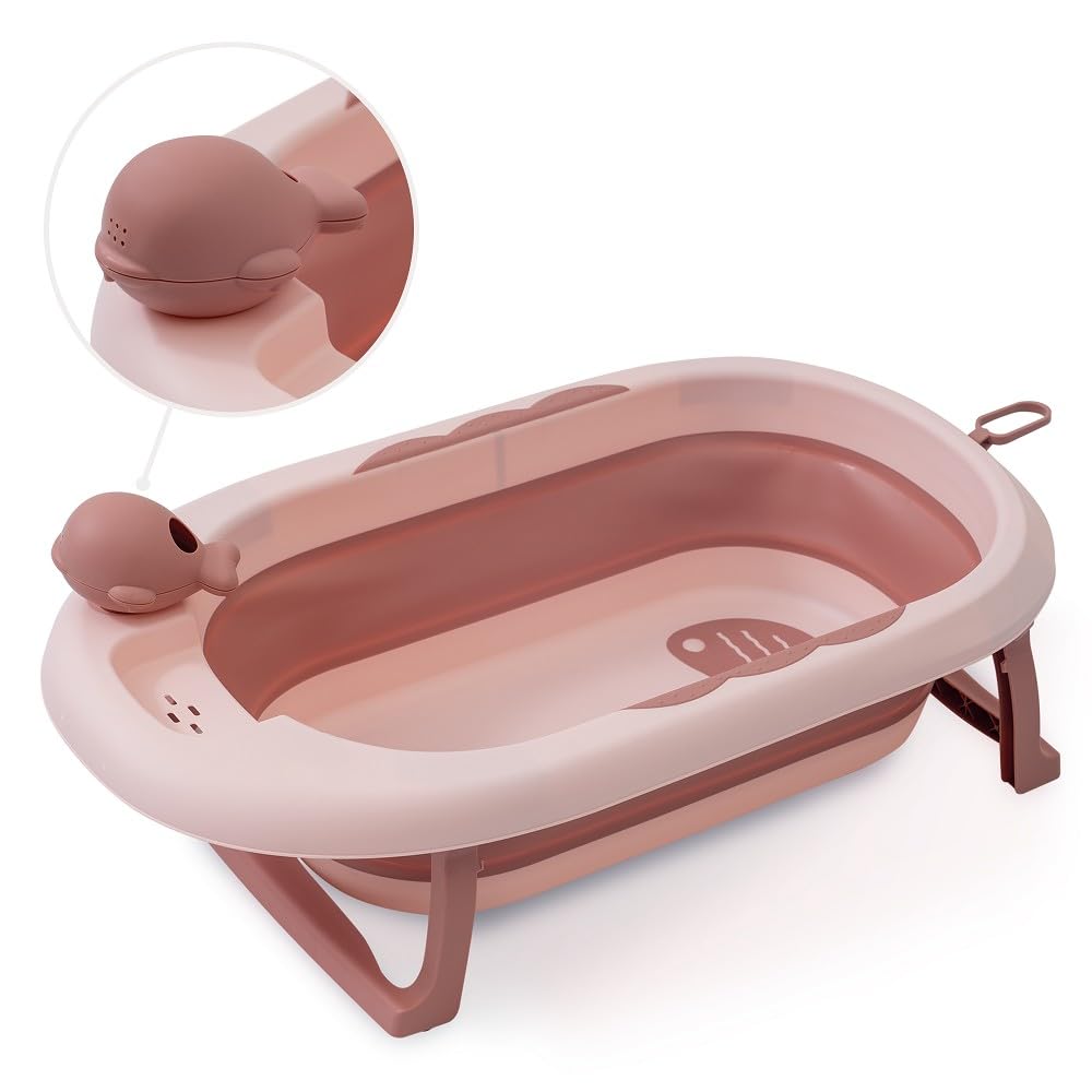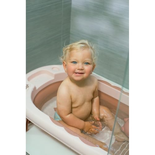 Interbaby kokkupandav beebivann termomeetri ja padjaga, roosa