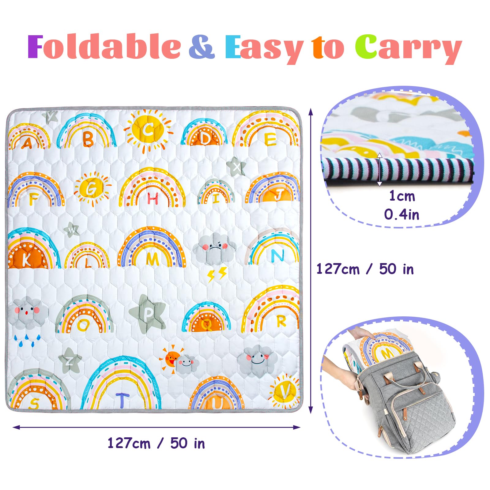 Funsland beebide mängumatt, kokkupandav, 127×127 cm, vikerkaare muster