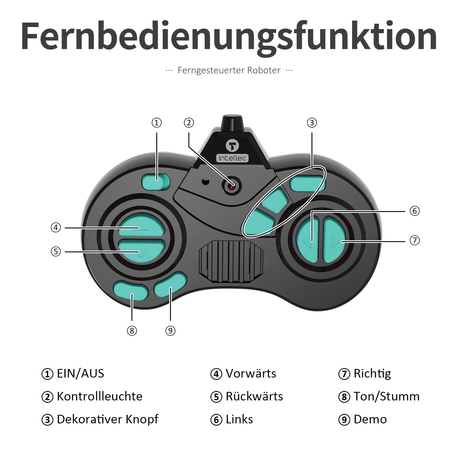 Puldiga juhitav robot lastele, LED-silmade ja tantsufunktsiooniga, sinine