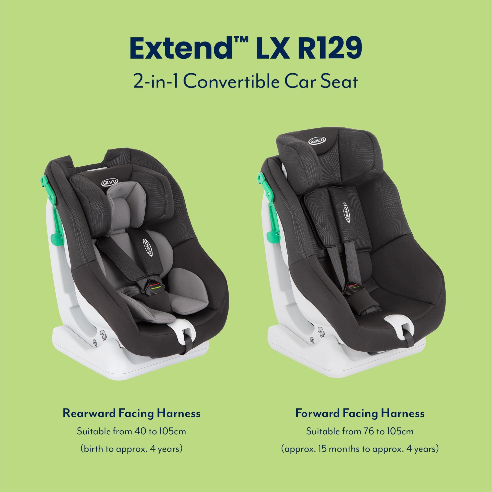 Graco Extend LX R129 on mitmekülgne turvatool, mis sobib kasutamiseks alates sünnist kuni umbes 4. eluaastani (40–105 cm). Laps saab sõita selg sõidusuunas kogu perioodi vältel, mis on kõige turvalisem viis reisimiseks, või näoga sõidusuunas alates 15. kuust (76–105 cm). Turvatoolil on 4 kaldenurka, 6-asendiline peatoe ja turvarihma kõrguse samaaegne reguleerimine ning Safety Surround külgkokkupõrke kaitse. Komplekti kuuluvad pehmendusega vastsündinu sisepadi ja rihmapadjad.