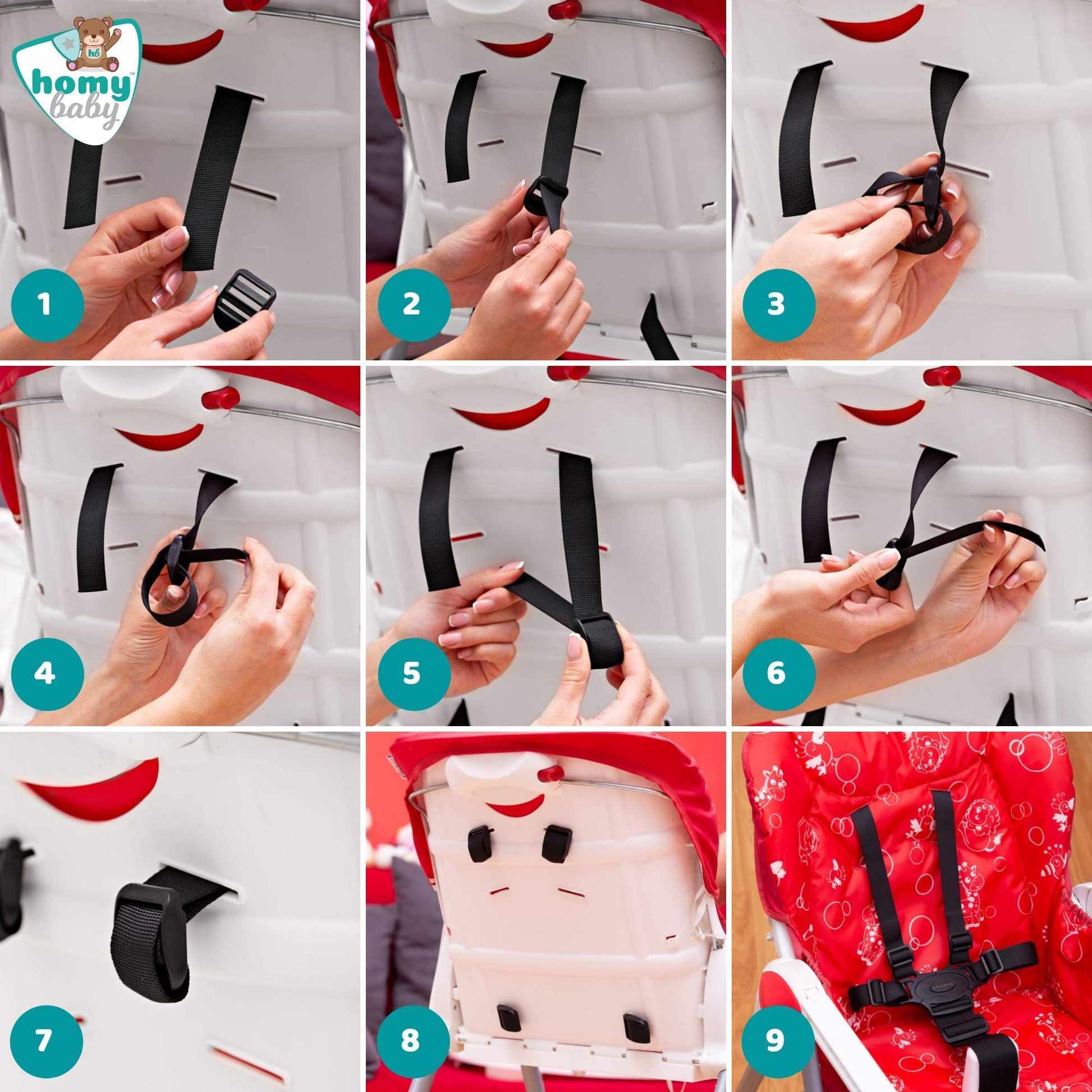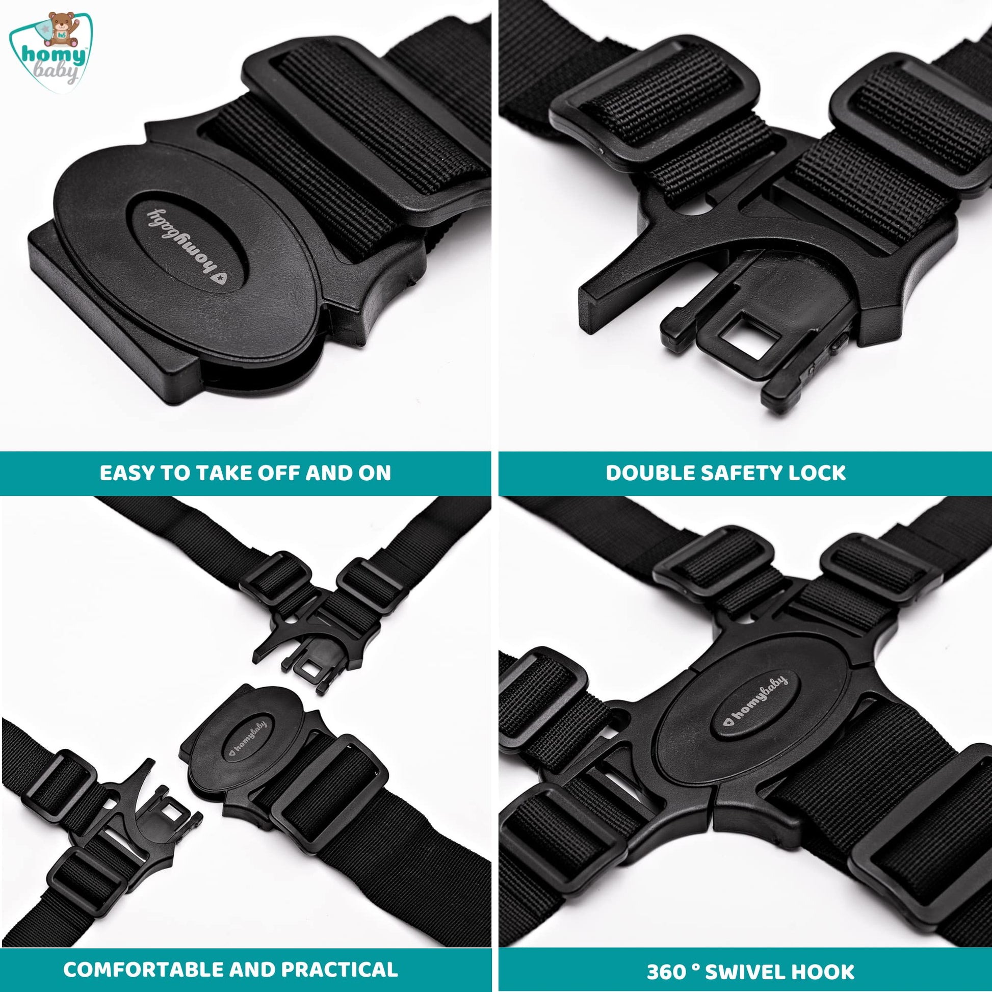 HOMYBABY turvarihm pakub lapsele suuremat ohutust nii kodus kui ka väljas. Universaalne 5-punkti süsteem sobib kasutamiseks autodes, söögitoolides, jalutuskärudes, rattatoolides ja mujal. Pehmest, vastupidavast nailonist valmistatud rihmad on reguleeritava pikkusega ja lihtsasti paigaldatavad – täiskasvanule mugav eemaldada, kuid lapsele keeruline avada. See turvavöö on ideaalne lahendus kulunud rihmade asendamiseks, et pikendada tooli või vankri kasutusiga.