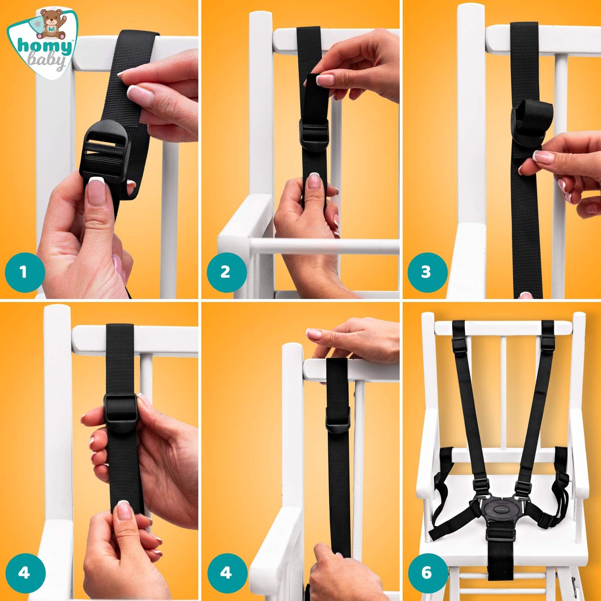 HOMYBABY® universaalne 5-punkti turvarihm söögitoolile, must