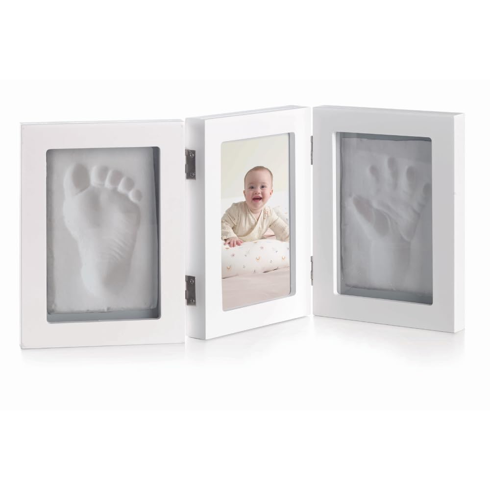 Jané valge beebi käe- ja jalajälje fotoraam modelleerimissaviga