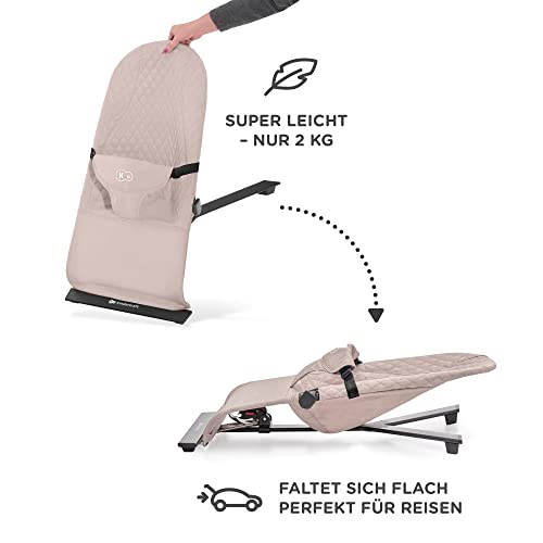 Kinderkraft MIMI beebitool on minimalistliku skandinaavia disainiga praktiline lahendus beebi rahustamiseks ja arengu toetamiseks. Sobib kasutamiseks sünnist kuni 9 kg (u 6. elukuuni või kuni laps hakkab iseseisvalt istuma). Loomulik õõtsuv liikumine aitab arendada tasakaalu ja koordinatsiooni, samas kui eemaldatav mängukaar kahe mänguasjaga pakub beebile õrna stimulatsiooni. Pehme ja ergonoomiline iste toetab beebi keha loomulikku asendit ning 3-punkti turvavöö tagab ohutuse. Kerge kaal (2,35 kg) ja kokkupandav konstruktsioon muudavad selle ideaalseks nii kodus kui ka reisil kasutamiseks. Katteriie on masinpestav ja kiiresti kuivav.