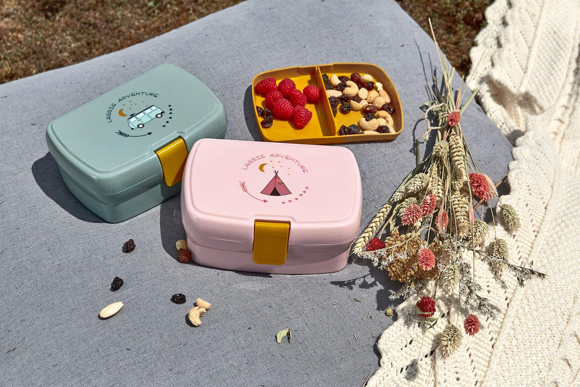 LÄSSIG Adventure Bus lõunakarp muudab iga eineaja lapsele lõbusaks ja mugavaks. Kaheosalise sisuga karbil on ülemine eemaldatav sahtel puuviljade ja väikeste suupistete jaoks ning alumine sügavam osa võileibadele ja saiakestele. Vastupidav plastik ja lapsesõbralik sulgur muudavad selle ideaalseks kaaslaseks kooli, lasteaeda või matkale. Lõunakarpi on lihtne puhastada – see sobib nõudepesumasinasse.