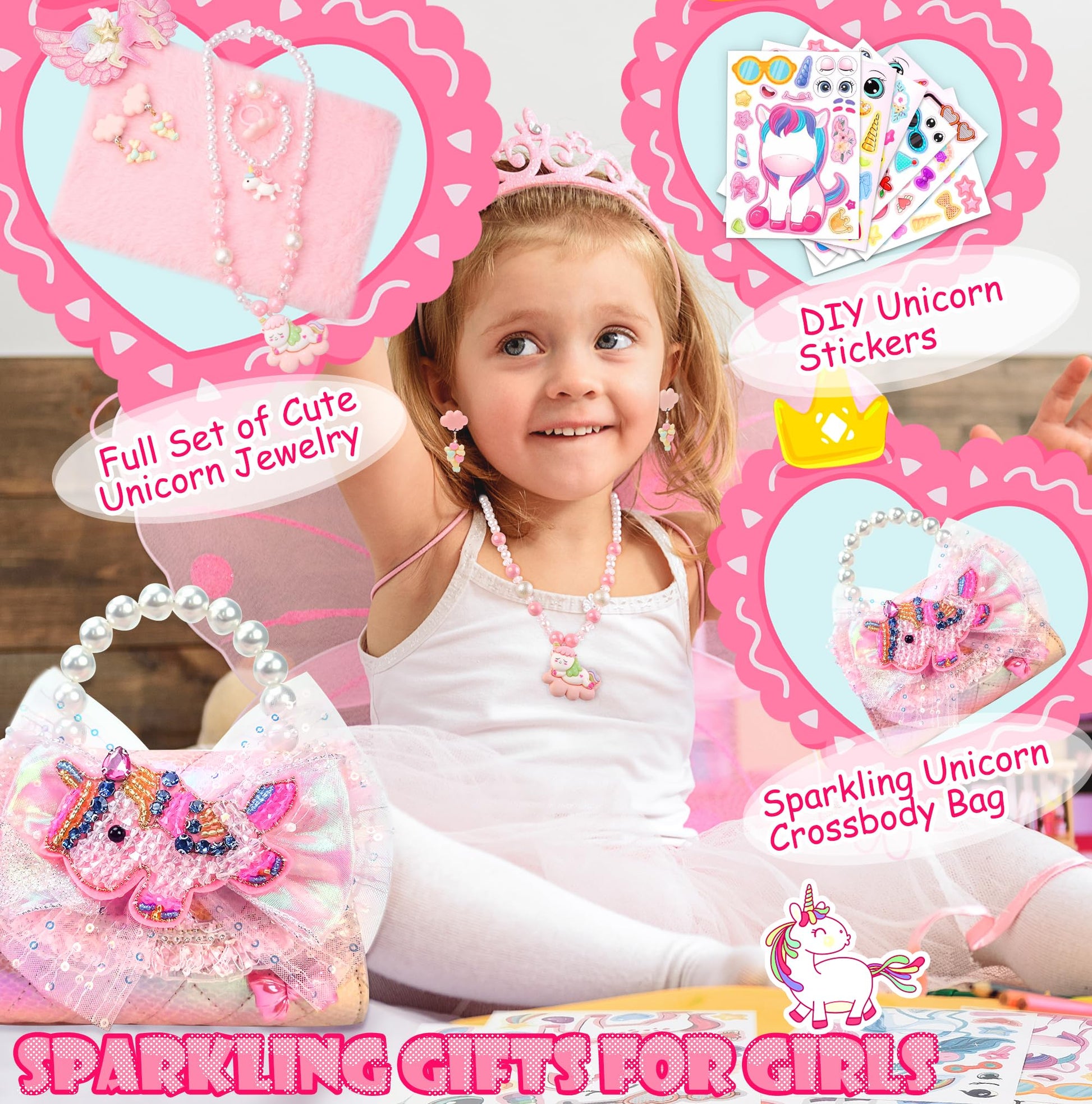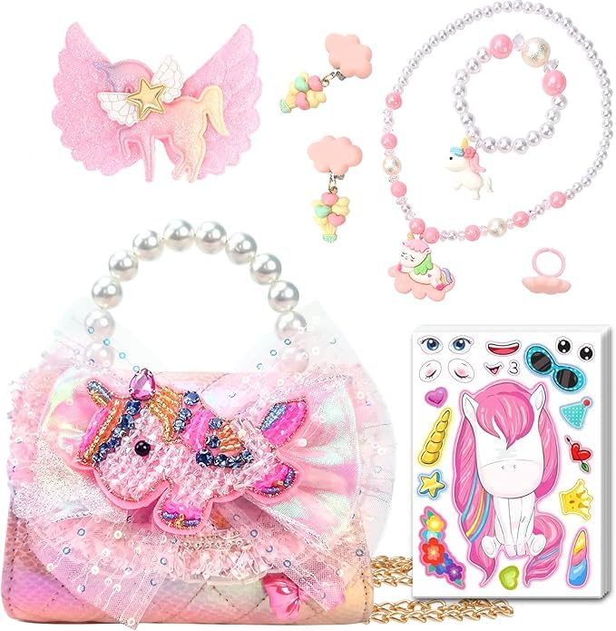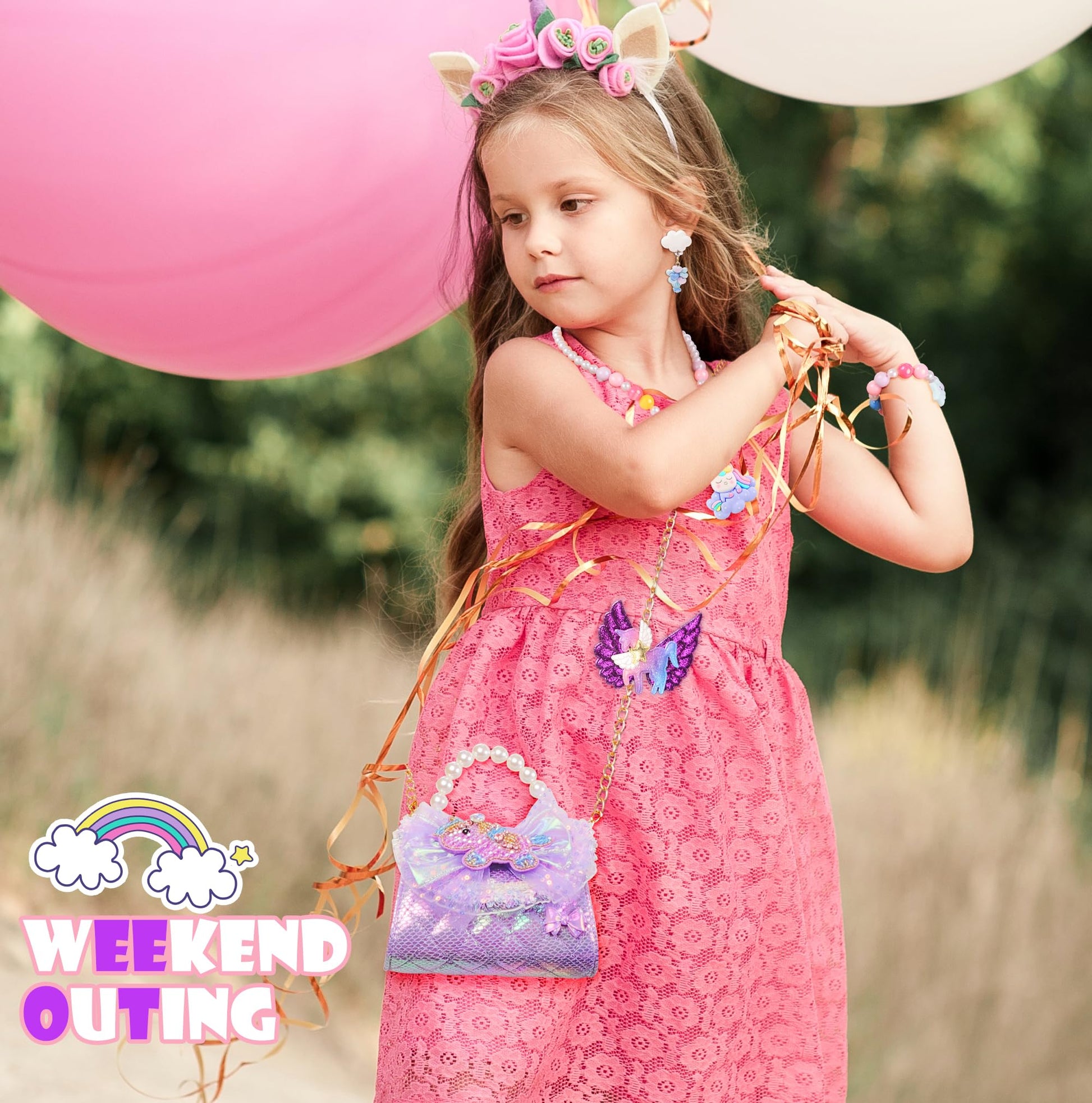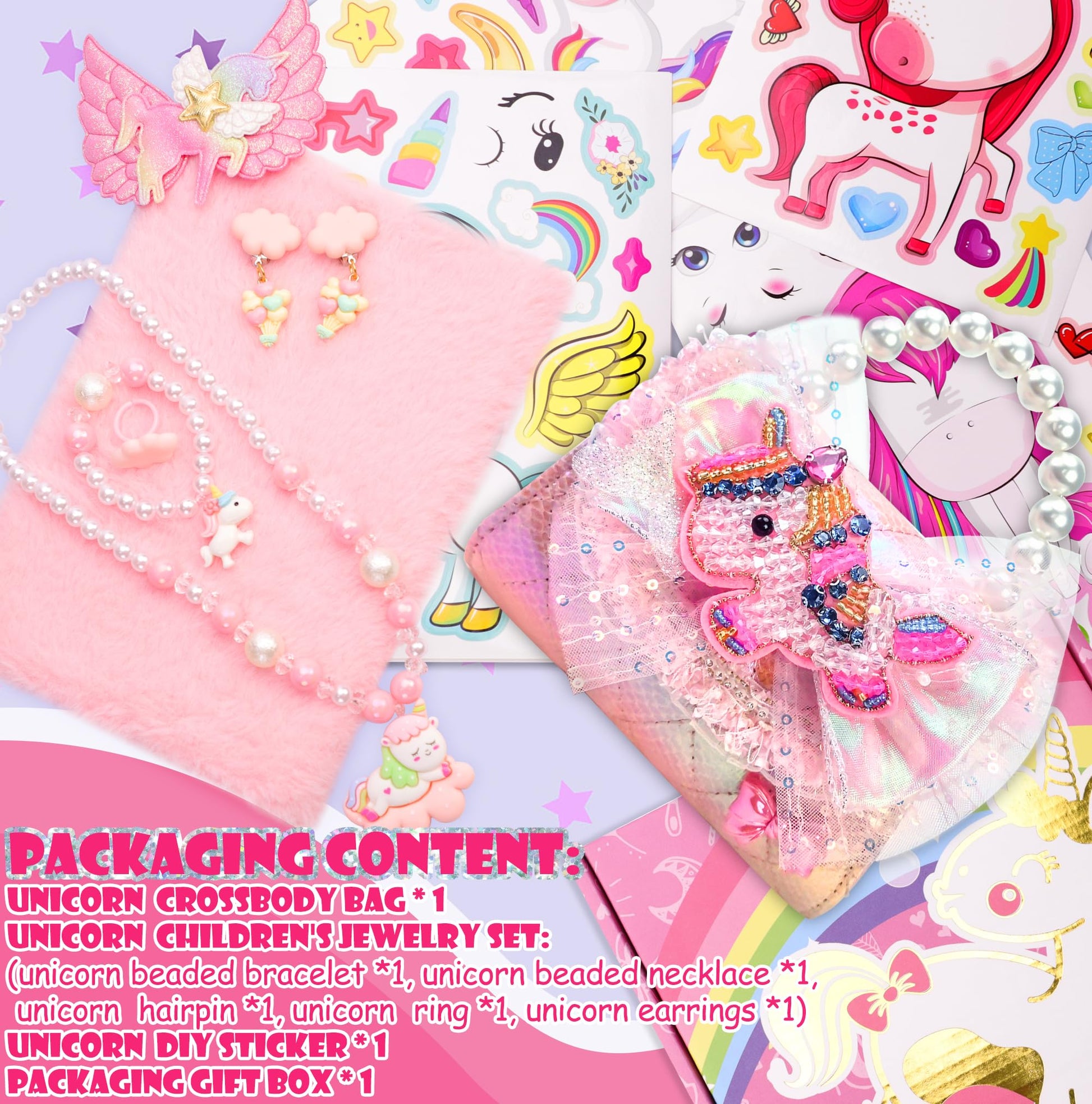 Laste käekott ja ehete komplekt, ükssarviku disainiga, 7-osaline