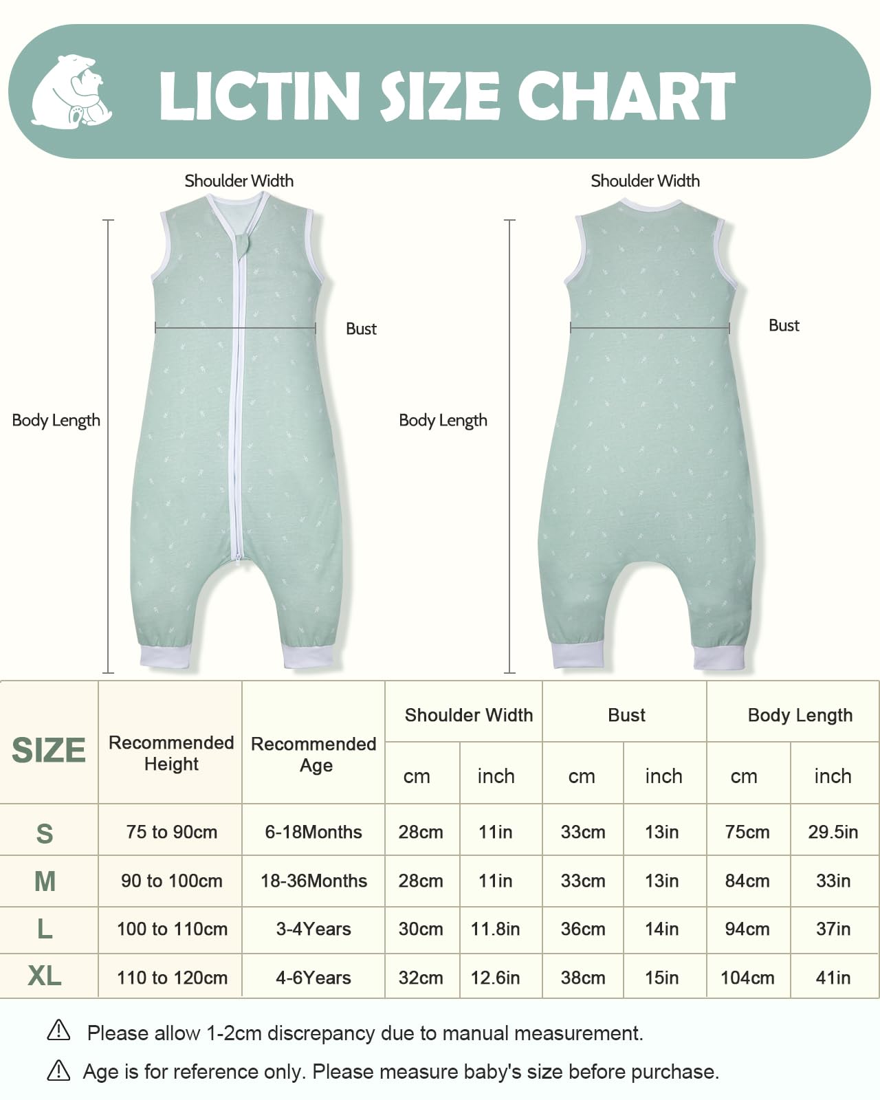 Lictin suvine beebi magamiskott jalgadega, 0.5 TOG, 100% puuvill, 3–4 aastastele