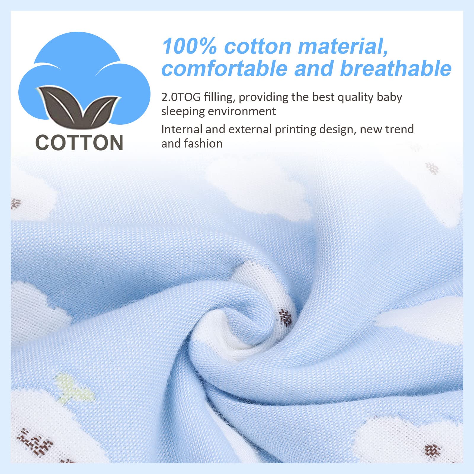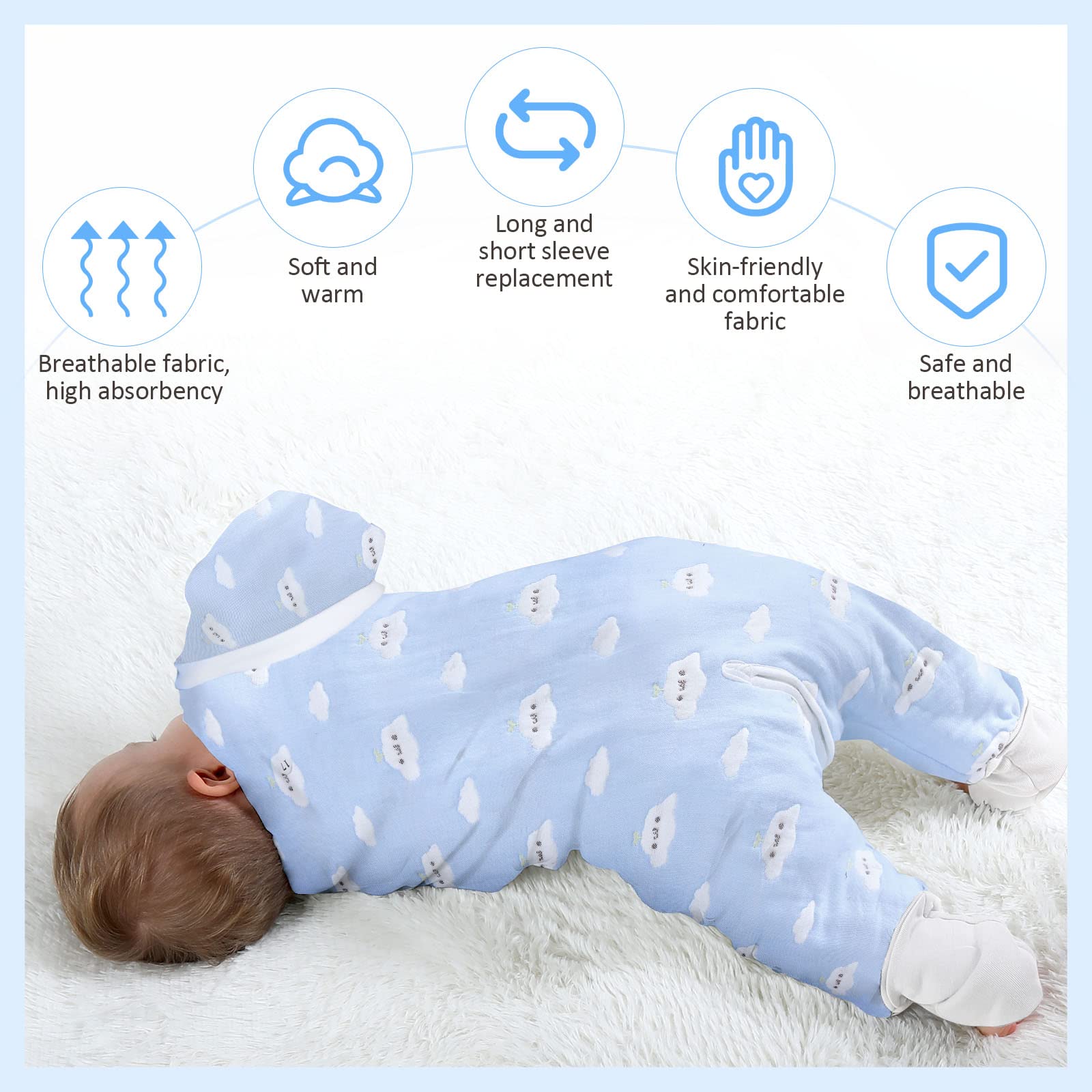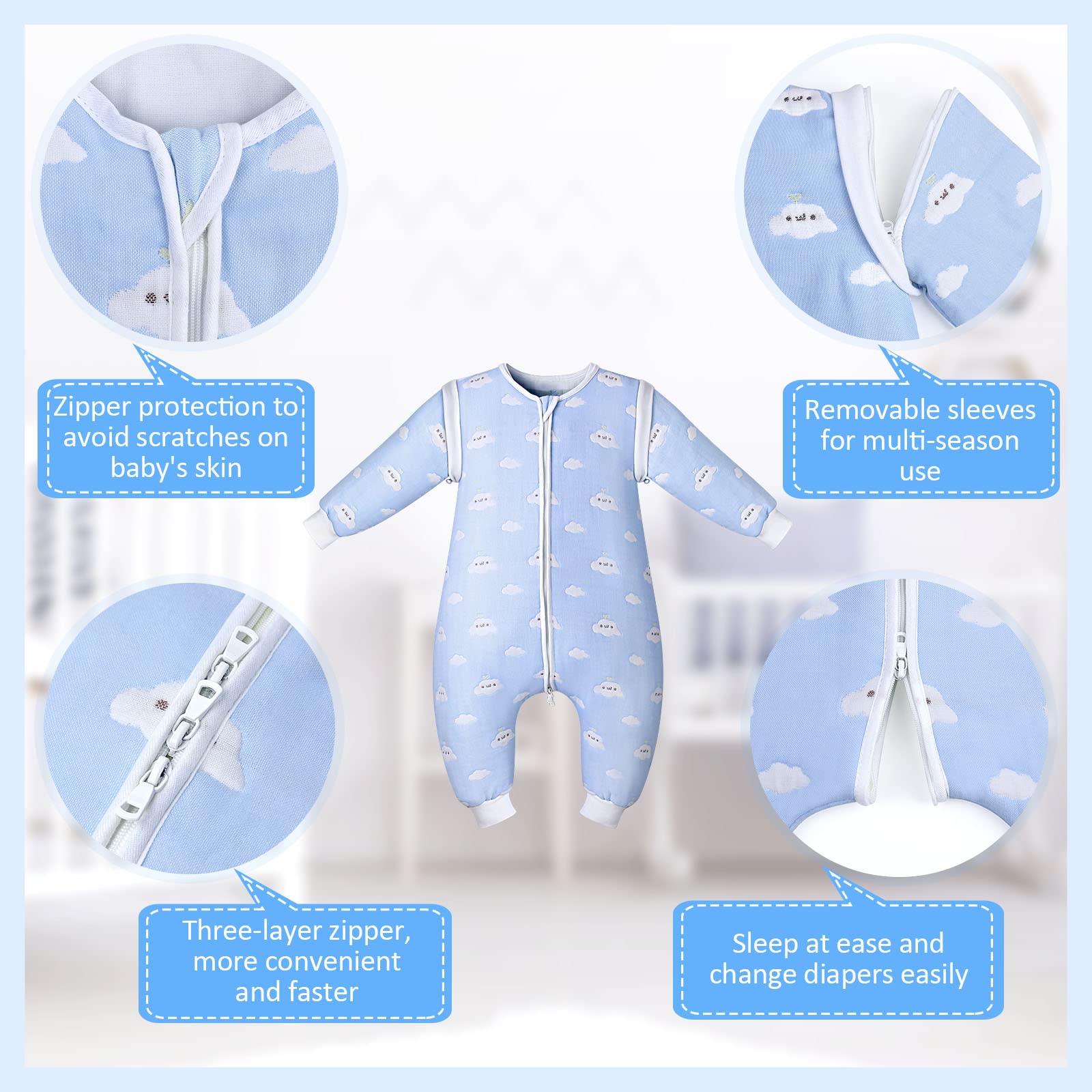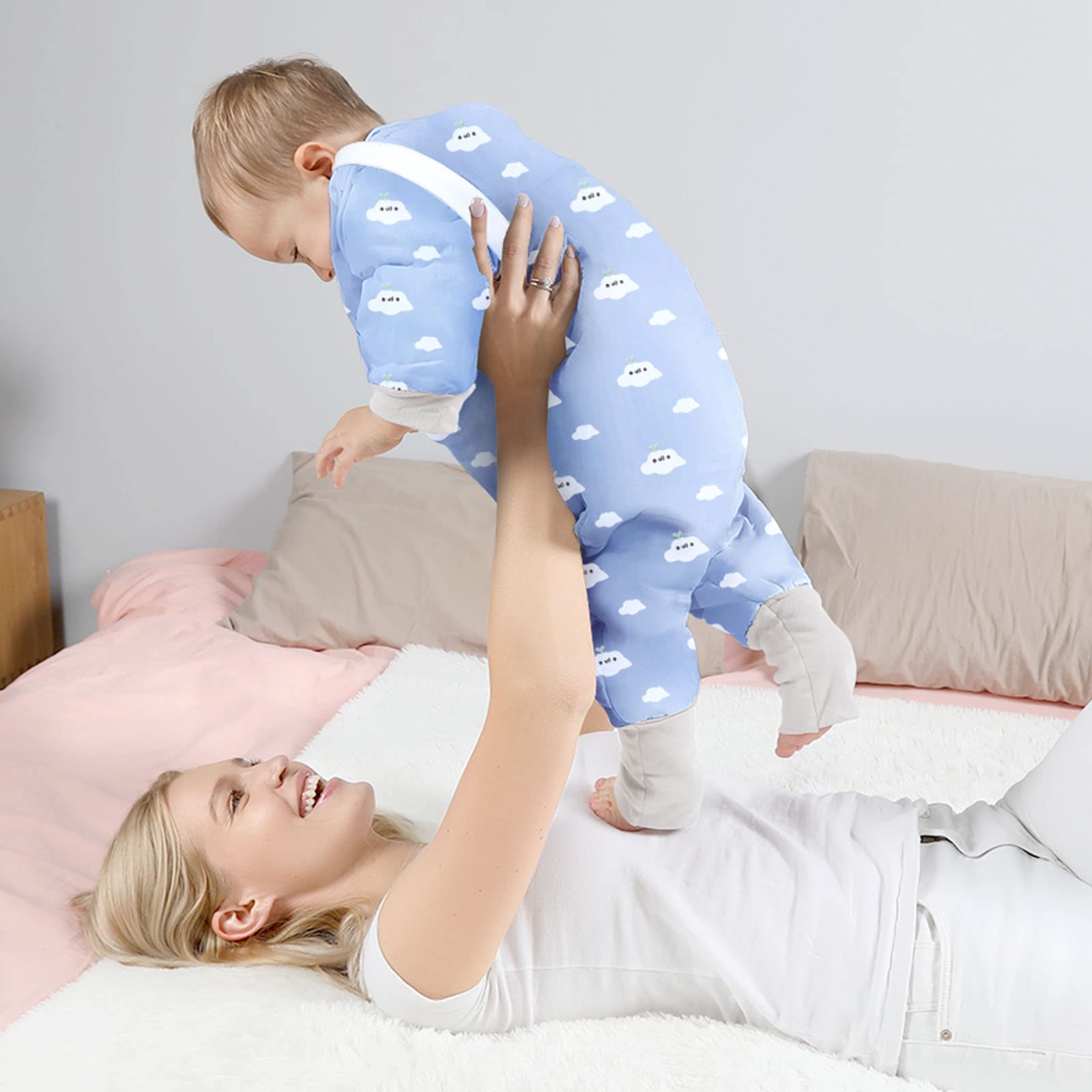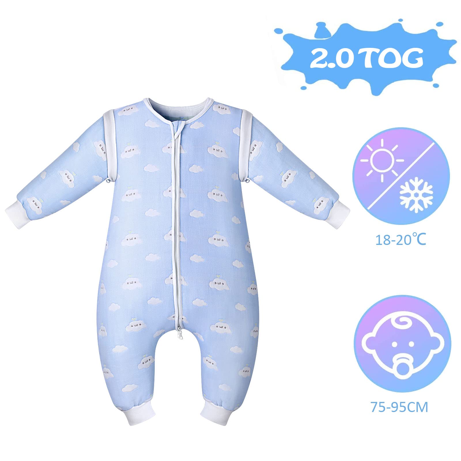 Lictin magamiskott beebile, TOG 2.0, eemaldatavate varrukatega, 80 cm, helesinine pilvemuster