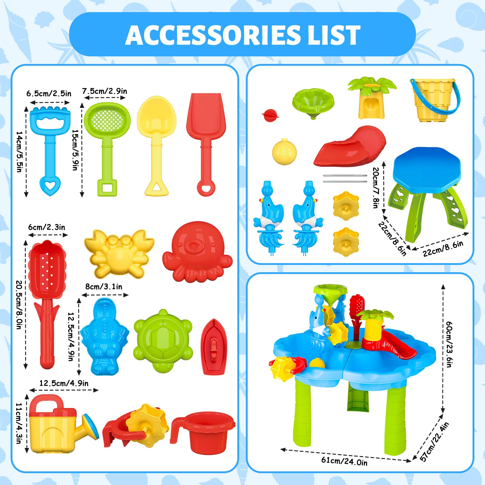 See liiva- ja veemängulaud pakub lastele mitmekülgset mängulusti nii aias, rannas kui ka toas. Lapsed saavad kombineerida liiva ja vett, luues omaette loova mängumaailma, mis arendab sensoorset tajumist ja käelisi oskusi. Laud on valmistatud vastupidavast ja mittetoksilisest plastist, sellel puuduvad teravad servad ning seda on lihtne kokku panna ja puhastada. Erksad värvid ja nutikas disain muudavad mängu veelgi kaasahaaravamaks. Sobib suurepäraselt laste iseseisvaks tegevuseks või sõprade ja perega koos mängimiseks.