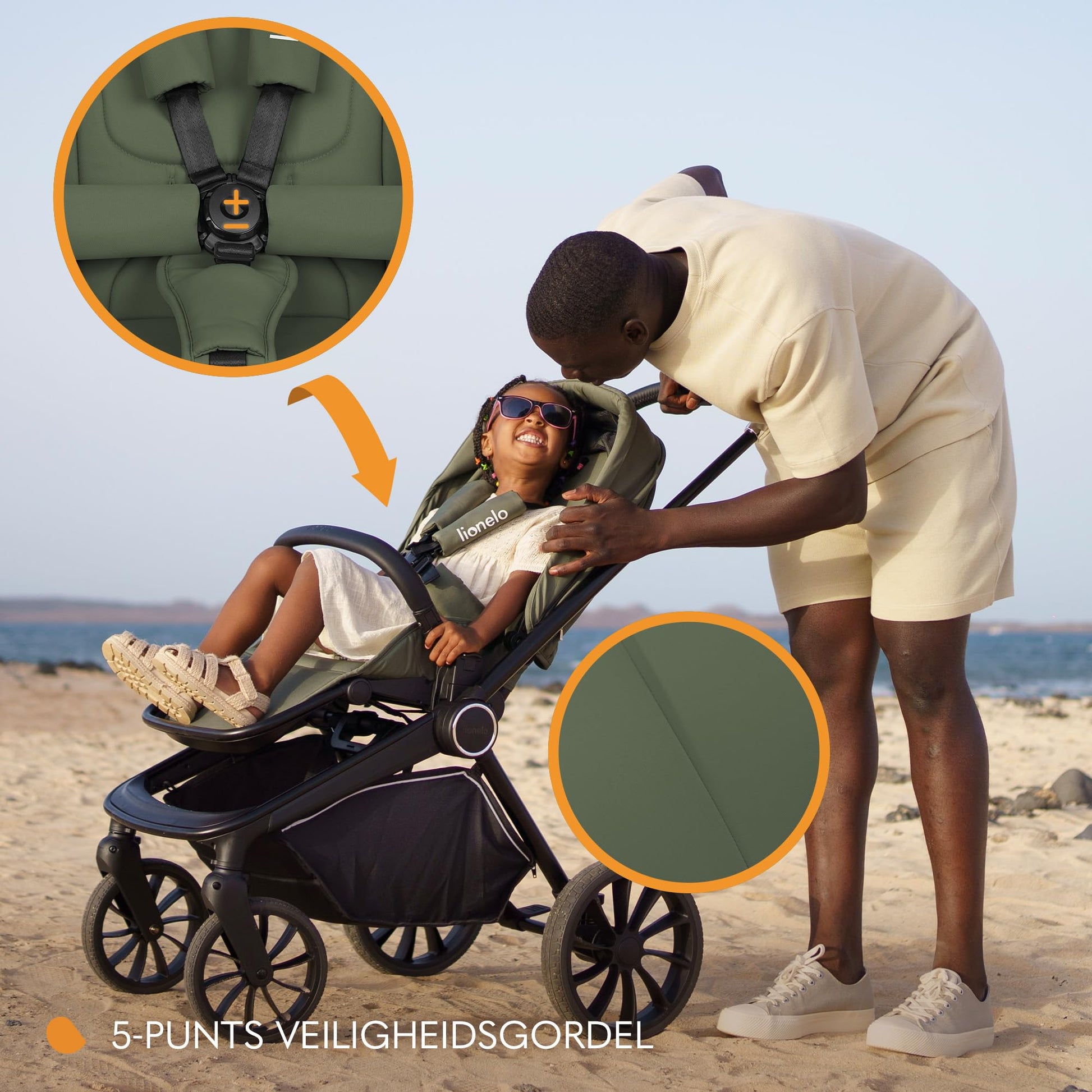 Lionelo Mika Plus 2-ühes lapsevanker (beebihäll ja jalutuskäru), Green olive