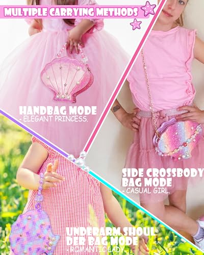 LSSAGOON merikarbi kujuline käekott on ideaalne aksessuaar väikestele printsessidele. Läikivast ja veekindlast PU-nahast valmistatud kotike on kerge, mugav ja vastupidav. Kalasoomuse muster ja sädelev viimistlus annavad sellele erilise välimuse, mis sobib nii igapäevaseks kandmiseks kui ka pidulikumaks puhuks. Kotil on eemaldatav 100 cm pikkune metallkett pehme PU-õlarihmaga, mis muudab kandmise mugavaks. Komplektis on ka helmestega käevõru, mida saab kasutada kotil käepidemena. Ideaalne kingitus sünnipäevaks, jõuludeks või erilisteks üritusteks.
