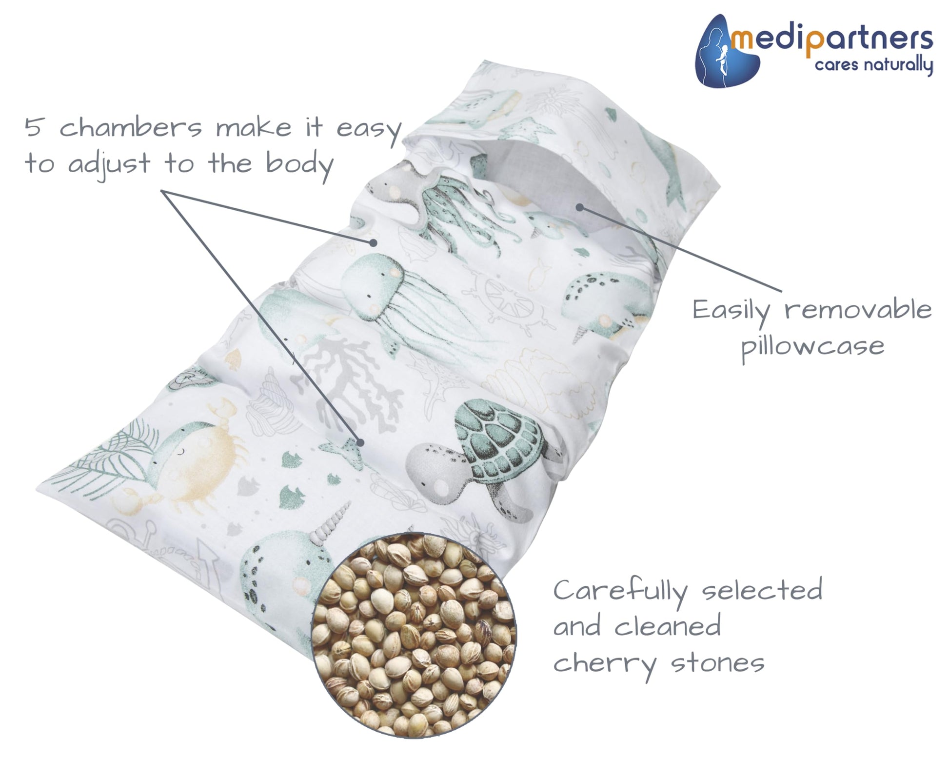 Medi Partners kirsikivi padi 60×20 cm, 800 g, 5-kambriline, eemaldatava puuvillase kattega