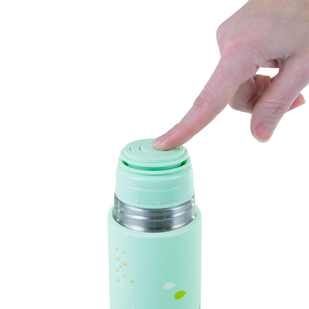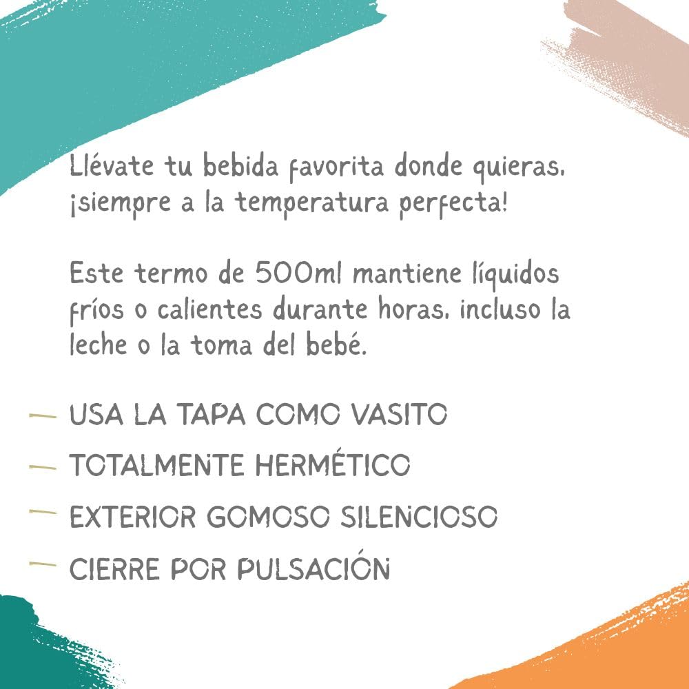Miniland Whaley 500 ml beebitermos hoiab joogi või toidu temperatuuri püsivana üle 24 tunni – ideaalne igapäevaseks kasutamiseks või reisile kaasa võtmiseks. Termos on valmistatud kvaliteetsest roostevabast terasest (304) ja sisaldab lisaks vasekihti, mis tagab suurepärase soojusisolatsiooni ja vastupidavuse. Hermeetiline survekork väldib lekkeid ja võimaldab mugavat valamist ühe käega. Kõik osad on eemaldatavad, et puhastamine oleks kiire ja lihtne. BPA- ja mürgivaba materjal tagab ohutu kasutuse beebi toidu ja joogi säilitamisel.