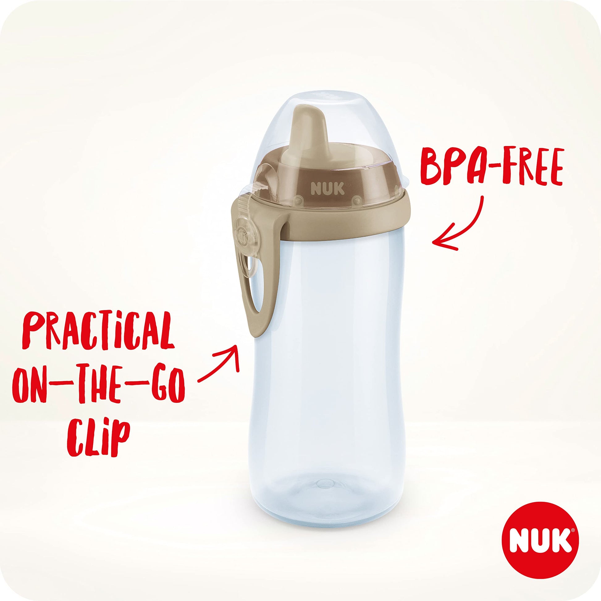 NUK Kiddy Cup joogitops on ideaalne lastele alates 12. elukuust. Vastupidav jooginokk peab vastu ka hammaste jälgedele, tehes topsi igapäevaseks ja turvaliseks kaaslaseks. Tänu 300 ml mahule kustutab see ka suurema janu, samas kui ergonoomiline kuju teeb selle väikestele kätele lihtsaks haarata. Lekkevaba ventiil tagab muretu joomise ja lihtsama puhastuse. Paindlik kork ühendusega hoiab kaane kindlalt topsi küljes, et see ei läheks kaduma.