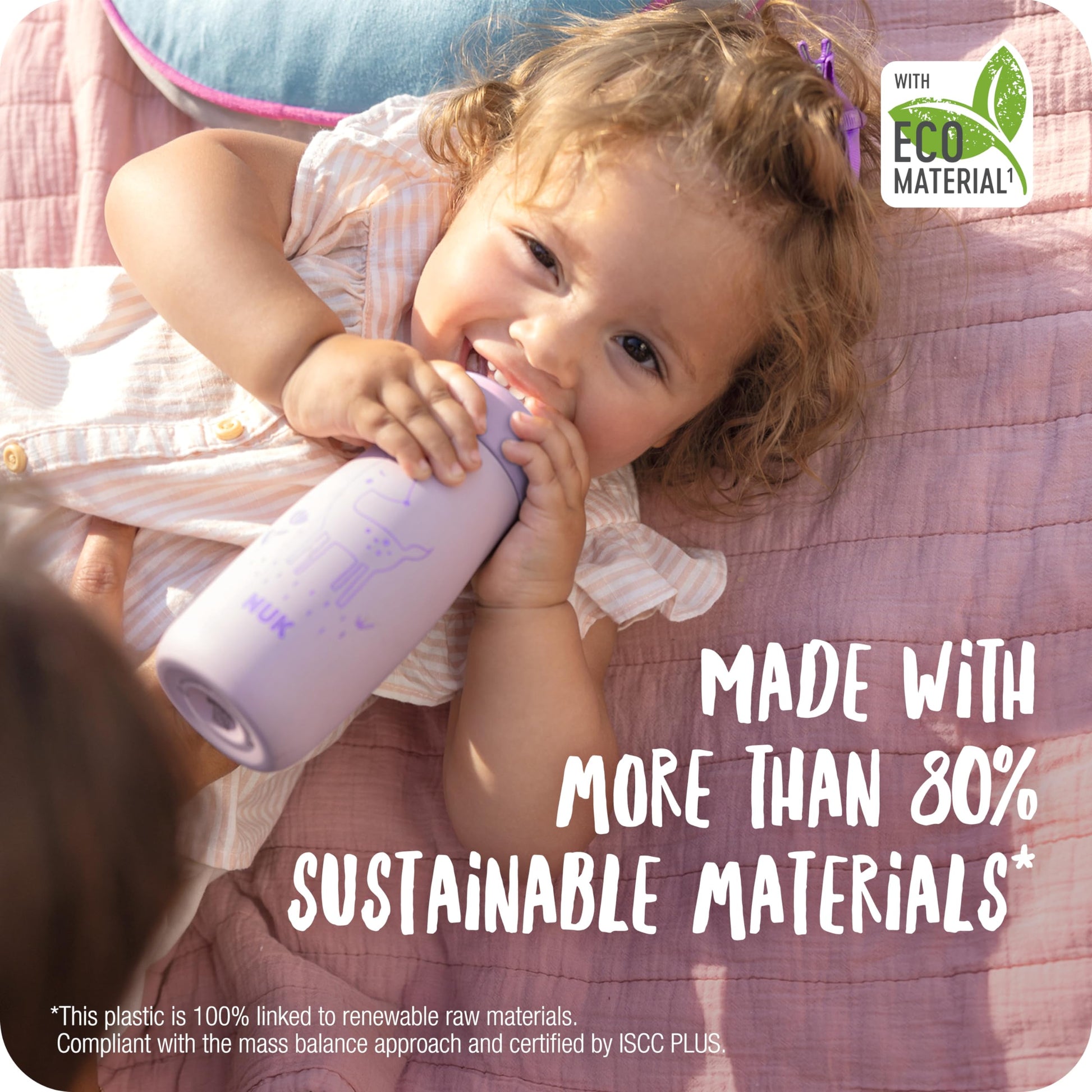 NUK Mini-Me Flip joogipudel muudab vedeliku tarbimise lihtsaks ja lõbusaks nii kodus kui ka liikvel olles. 2-ühes jooginokk võimaldab lapsel juua kõrrega või ilma ning vastupidav hammustuskindel tila peab vastu väikestele hammastele. Pudel on valmistatud enam kui 80% looduslikest toorainetest ning selle purunemiskindel ja kerge disain sobib ideaalselt väikestele kätele. Lekkevaba kork ja hügieeniline kaitsekork hoiavad koti sisu kuivana ja puhtana. Kõik osad on nõudepesumasinas pestavad ning sobivad teiste NUK Mini-Me pudelite ja korkidega.