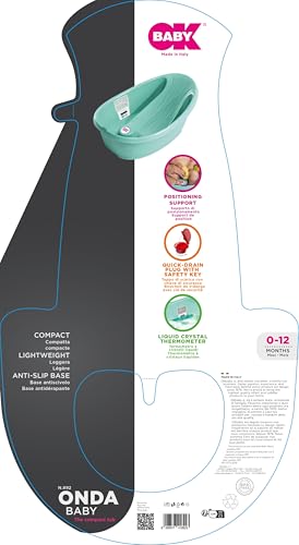 OKBABY Onda Baby vann on kompaktne ja ergonoomilise kujuga, sobides kasutamiseks alates sünnist kuni 12. elukuuni. Vannil on jalgadevaheline tugi, mis aitab beebil turvaliselt asendis püsida, ning libisemisvastased kummist otsikud stabiilsuse tagamiseks. Sisseehitatud vedelkristall-termosta abil saab veetemperatuuri hõlpsalt jälgida. Vann on kerge ja kompaktne, mistõttu on seda lihtne transportida ja hoiustada. 100% valmistatud Itaalias, järgides kõrgeimaid kvaliteedi- ja ohutusstandardeid.