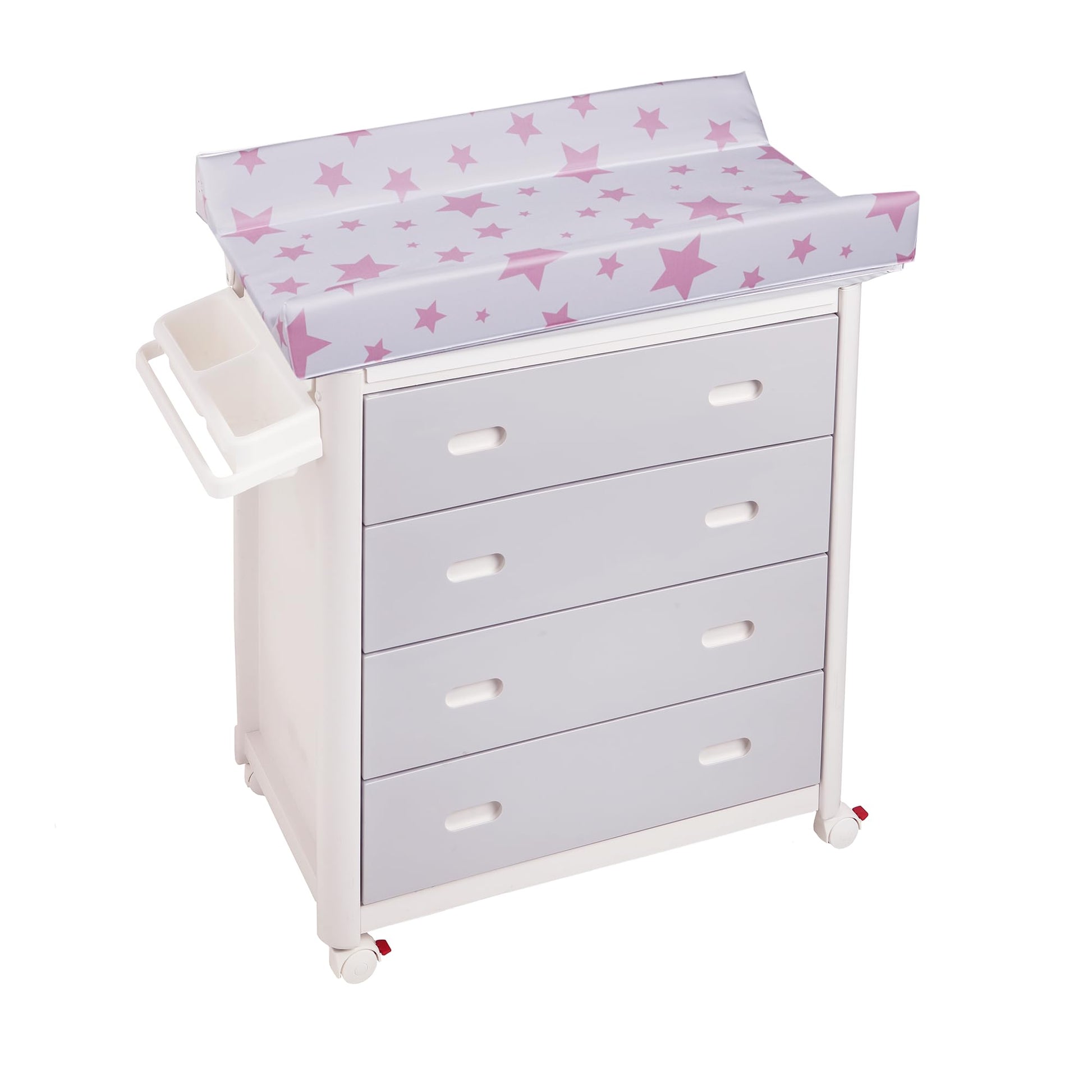 Plastimyr vanniga mähkimiskummut, 4 sahtliga, roosad tähed