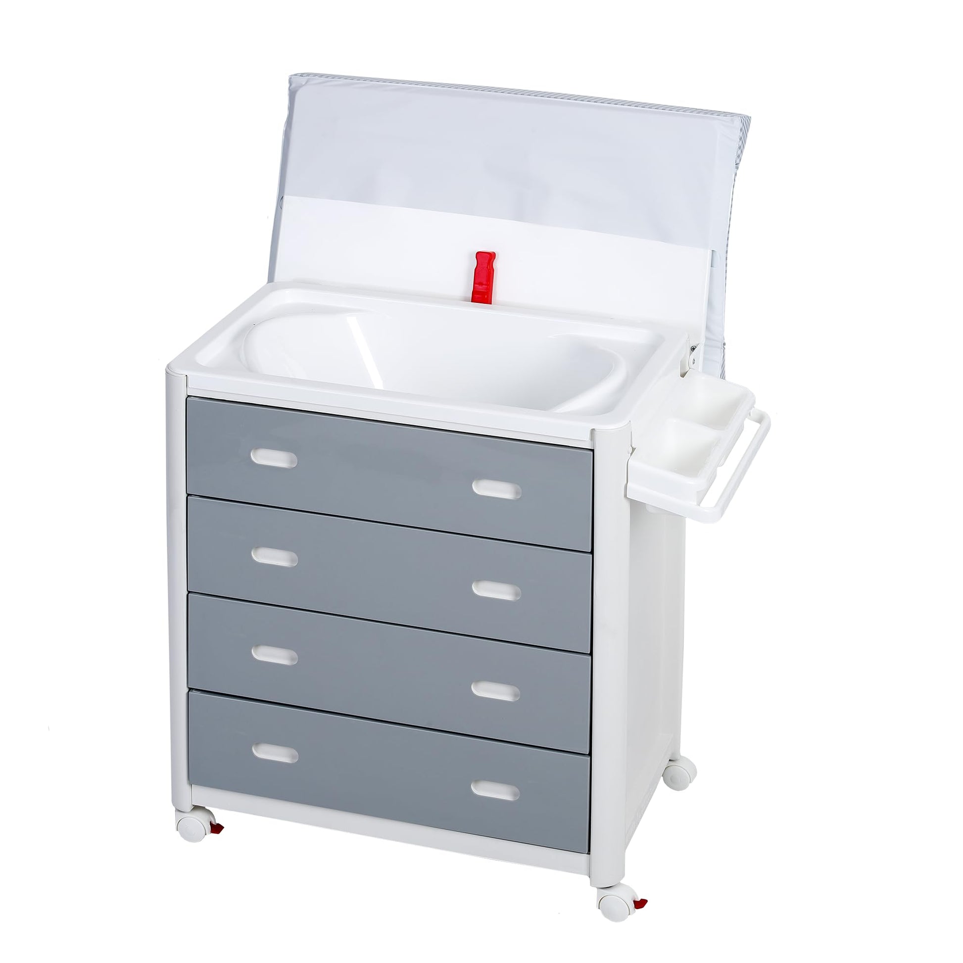 Plastimyr vanniga mähkimiskummut ühendab kolm funktsiooni ühes – vann, mähkimislaud ja kummut. Pehmendatud mähkimisalus on varustatud kallutuskaitsega, vannil on äravoolukork ja voolik lihtsaks tühjendamiseks. Lisaks on olemas eraldi riiulid šampoonide ja pesukäsnade jaoks ning neli avarat sahtlit beebiriiete või tarvikute hoiustamiseks. Tänu ratastele on kummutit lihtne liigutada. Kui laps kasvab ja vanni enam ei vajata, saab ülemised osad eemaldada ning kummutit kasutada klassikalise mööbliesemena.