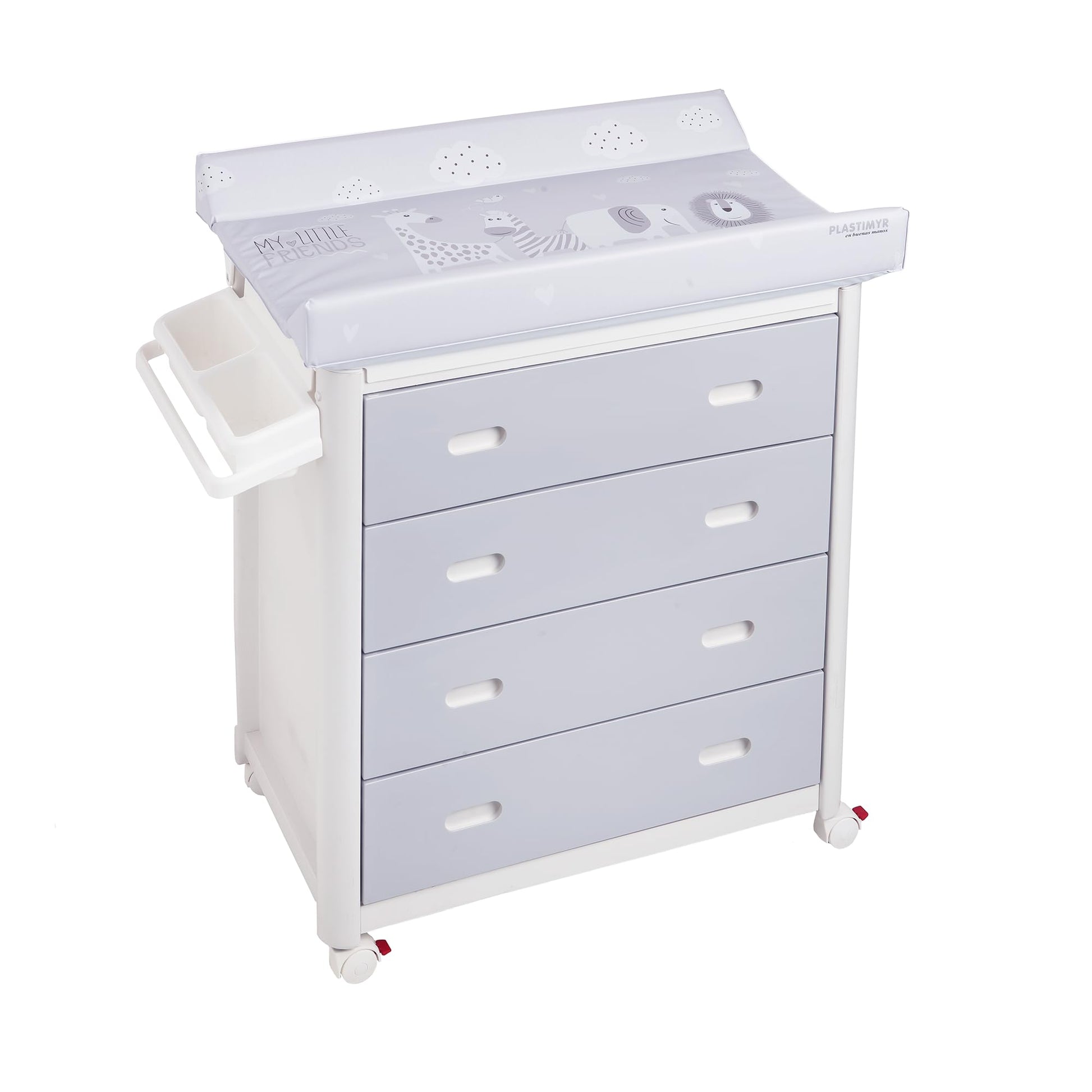 Plastimyr beebivanniga kummut 4 sahtli ja mähkimisalusega, hall