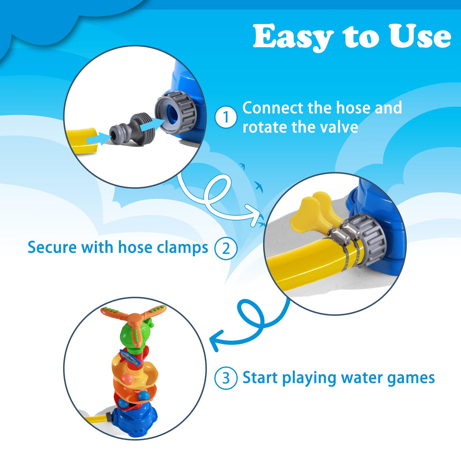 Lõbus 3-ühes veemängukomplekt pakub lastele mitmekesist tegevust kuumadel suvepäevadel. Helikopter pritsib vett ja pöörleb, samal ajal kui pallipüügi- ja delfiinimäng lisavad põnevust. Lihtne paigaldada – ühenda vaid aiavoolik ja mäng võib alata. Valmistatud vastupidavast BPA-vabast PVC-materjalist, mis on lastele ohutu ja sobib kasutamiseks aias või rannas. Ideaalne kingitus lastele alates 3. eluaastast.