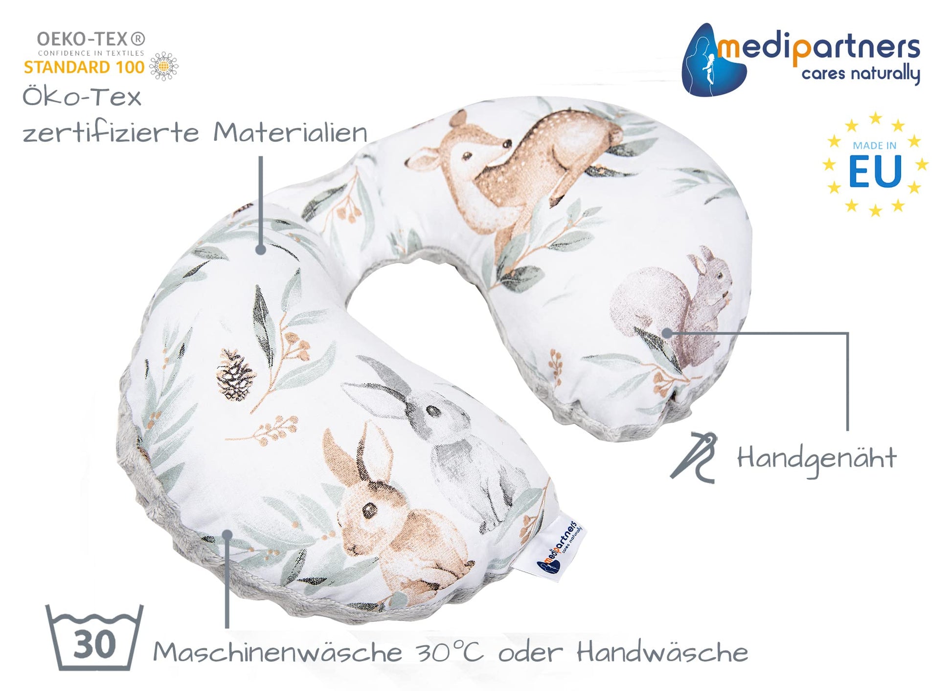Medi Partners reisipadi on loodud beebi mugavaks ja turvaliseks puhkuseks nii autos, vankris kui ka reisil. Padja eriline croissanti-kuju toetab lapse pead ja vähendab põrutusi, pakkudes rahulikku und ka pikematel sõitudel. Üks pool on valmistatud kvaliteetsest värvilise mustriga puuvillast, teine pool pehmest minky-pluushist. Antiallergilise silikoonkuulitäidisega padi on elastne, õrn ning turvaline ka kõige väiksematele. Kõik materjalid on vastupidavad, kauakestvad ja Oeko-Tex 100 sertifikaadiga.