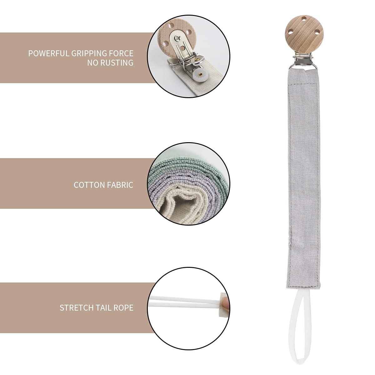 Ruby kangast lutiketid on praktilised ja stiilsed abivahendid, mis hoiavad luti, närimisrõnga või väikese mänguasja alati käeulatuses. Pehme puuvillane rihm ja looduslikust pöögipuust klamber on turvalised ning vastupidavad igapäevaseks kasutamiseks. Erinevad värvid ja tekstuurid köidavad beebi tähelepanu ning toetavad haarde- ja meelte arengut. Sobivad kinnitamiseks riiete, käru, võrevoodi või turvatooli külge.