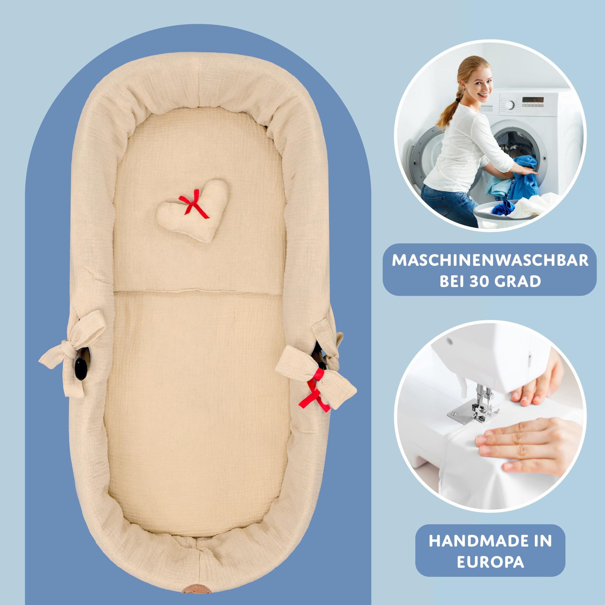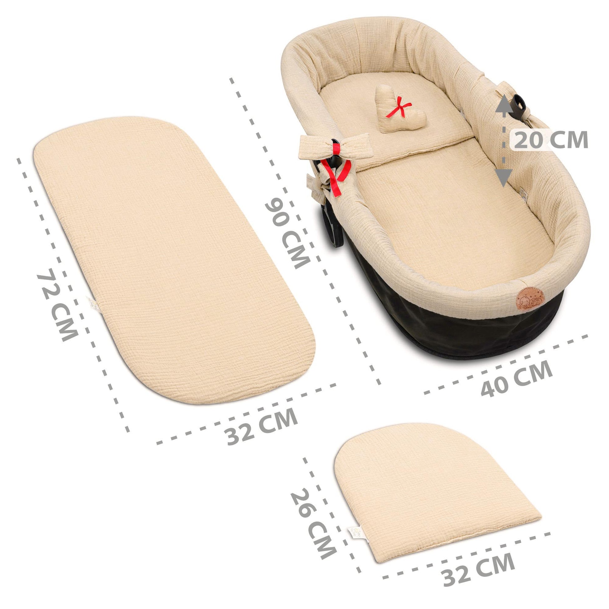 Totsy Baby musliinkomplekt vankrikorvi ja hälli jaoks pakub beebile pehmet ja mugavat keskkonda nii kodus kui liikvel olles. Kolmest osast koosnev komplekt (kate, padi ja sisupadi) sobib enamikele vankrikorvidele ja hällidele ning ühildub paljude tuntud brändidega nagu Cybex, Bugaboo ja Maxi Cosi. Kõik osad on masinpestavad ja valmistatud vastupidavatest materjalidest, mis säilitavad kuju ka sagedasel kasutamisel. Valmistatud EL-is, järgides kõrgeid kvaliteedistandardeid.