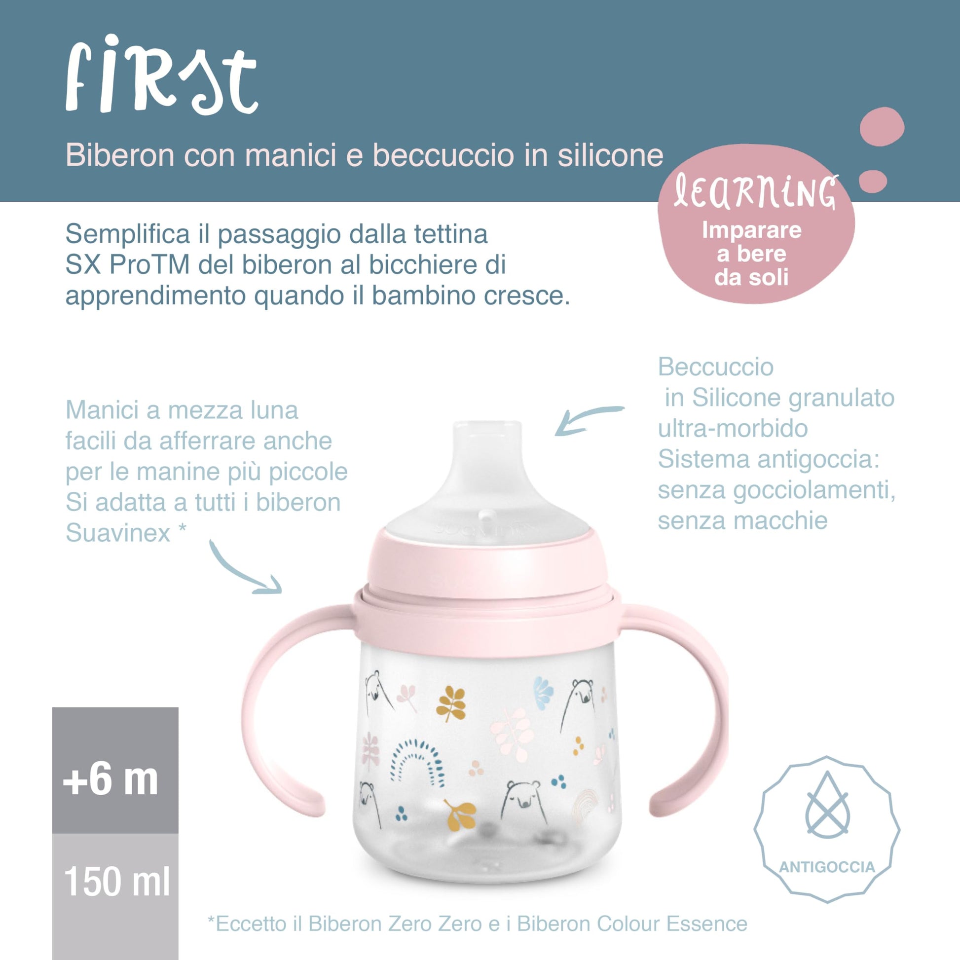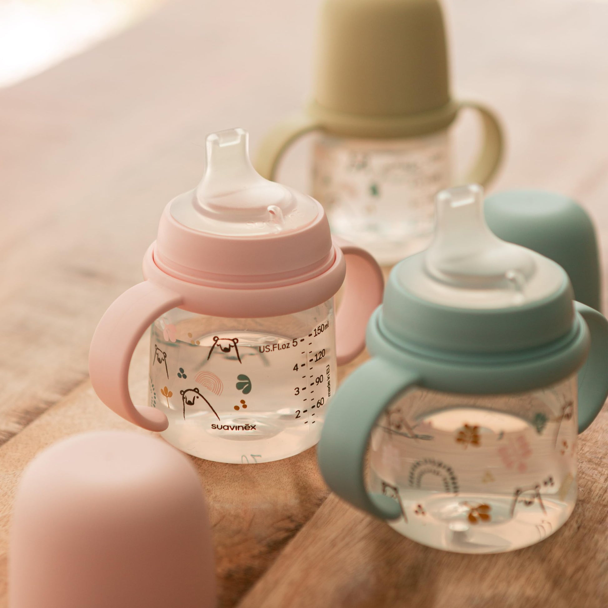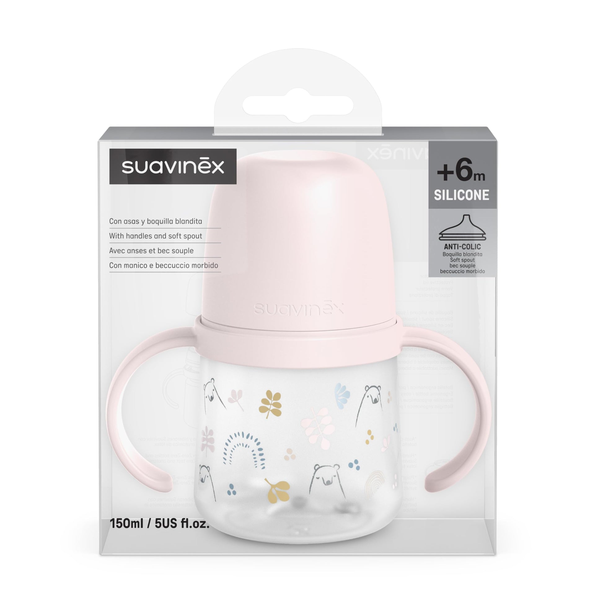Suavinex Bears treeningtass käepidemetega, 150 ml, roosa