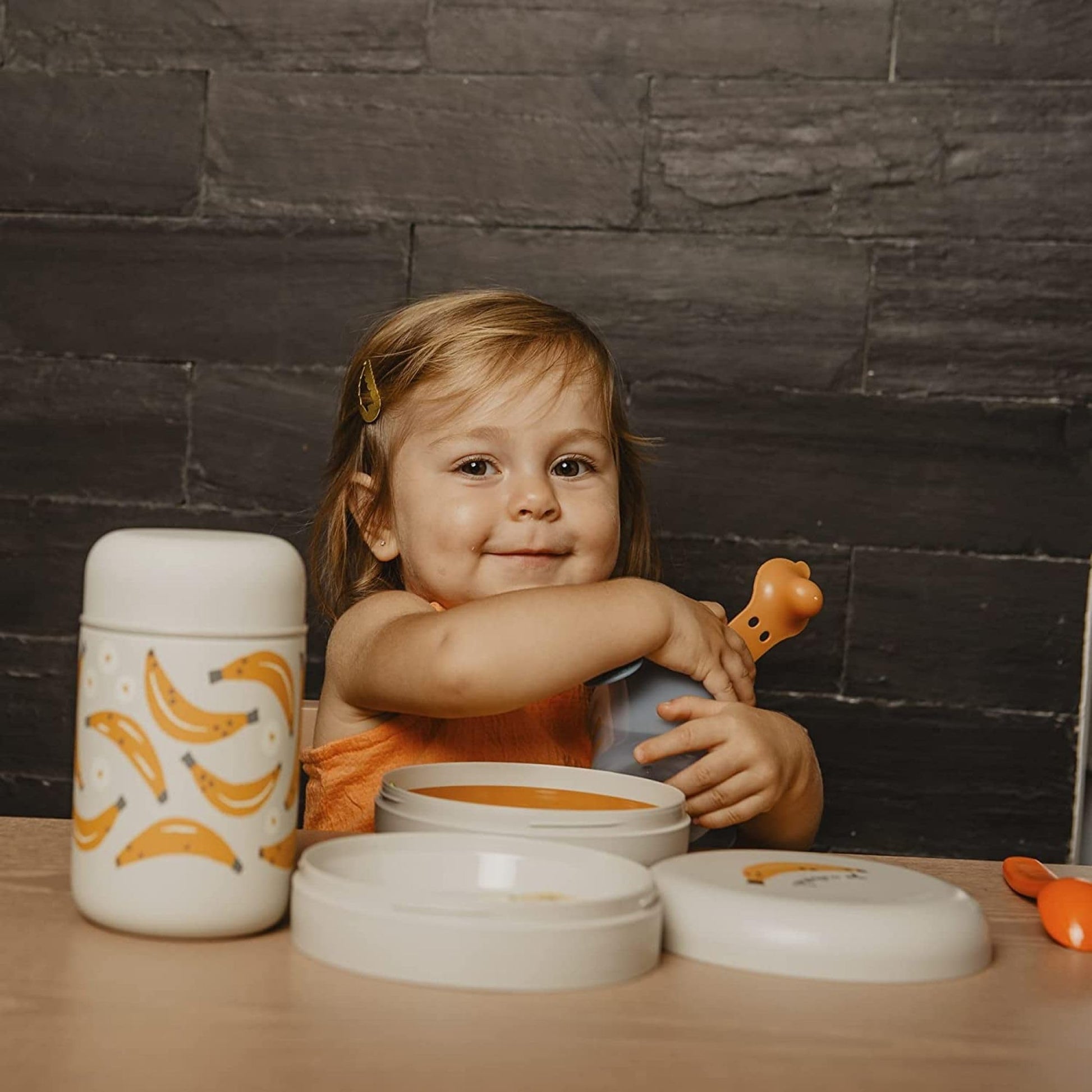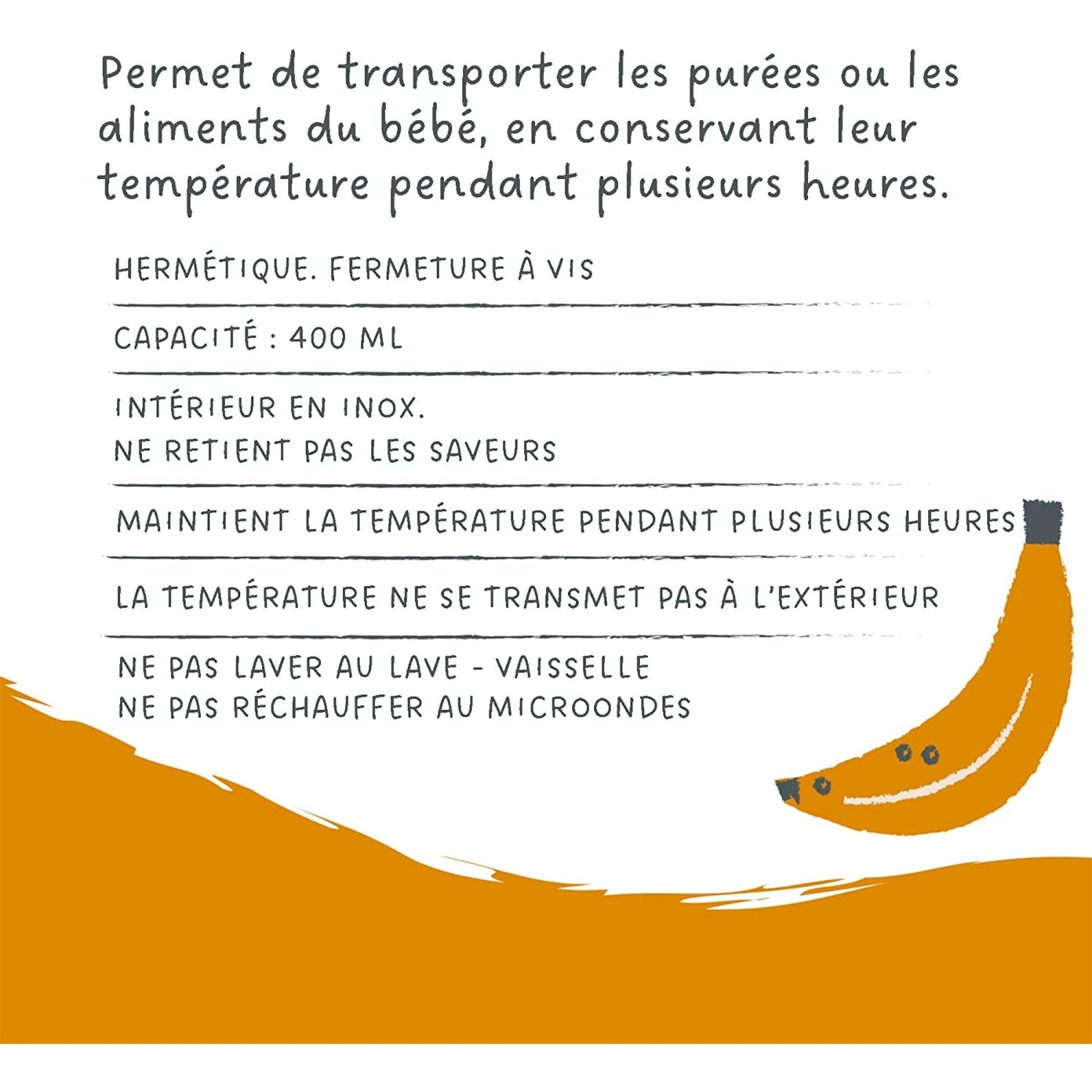 Suavinex roostevabast terasest beebitoidutermos 400 ml, hall, banaanimustriga