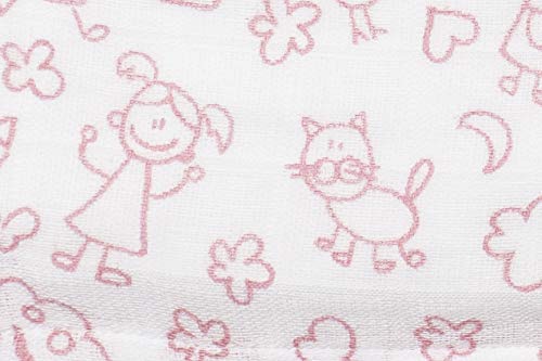 Ti TIN 100% puuvillane musliintekk “Children” mustriga, 120 × 120 cm, roosa