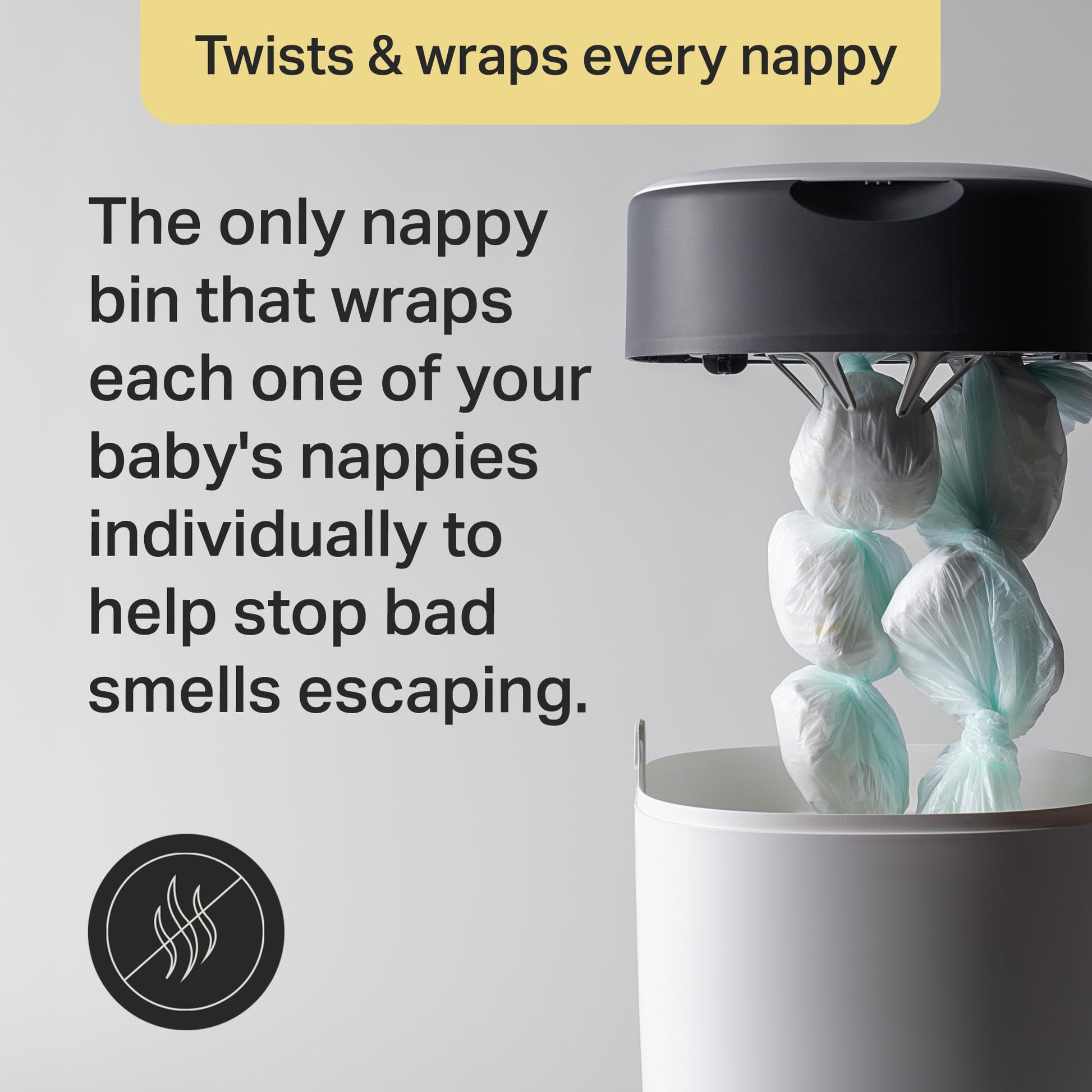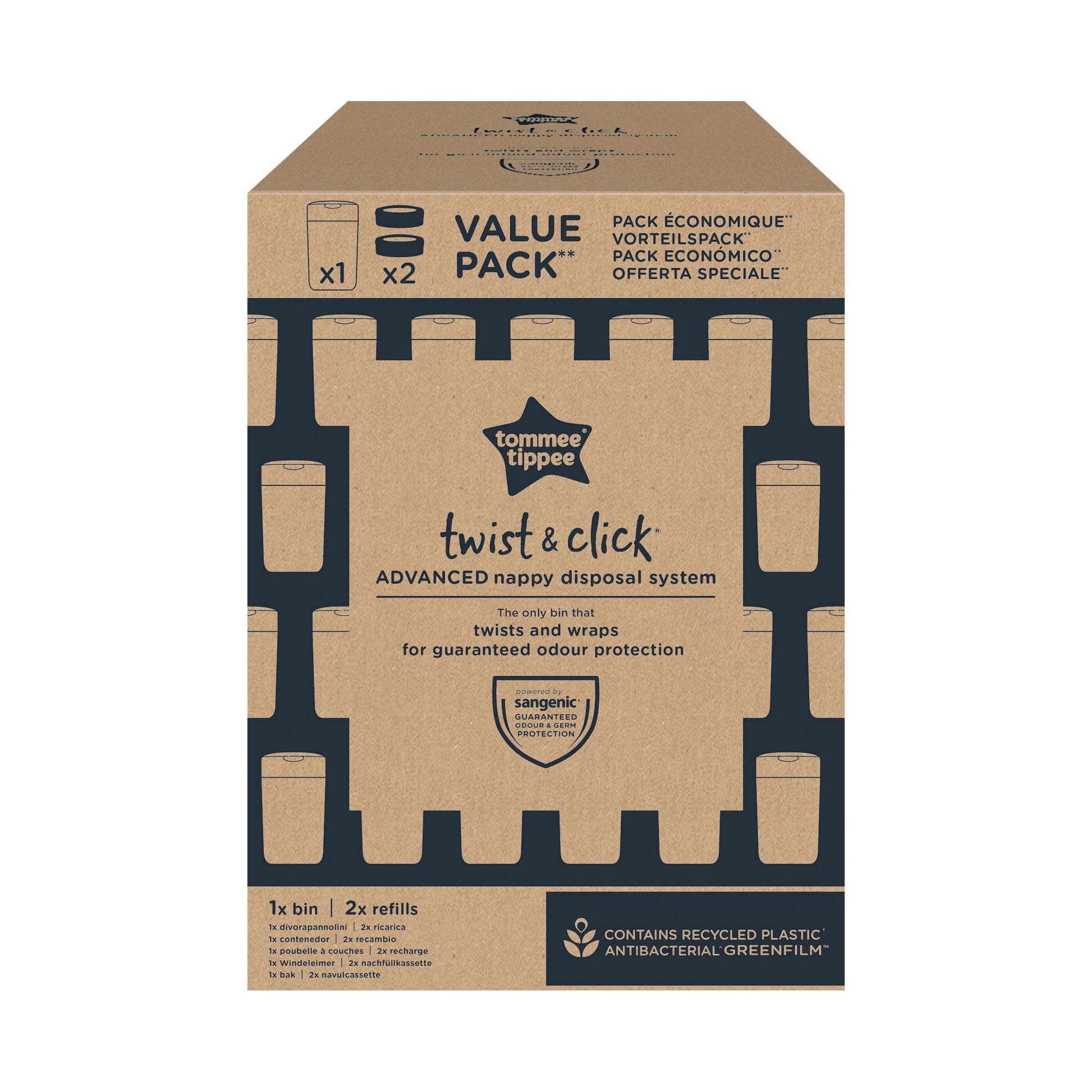 Tommee Tippee Twist & Click on ainus mähkmekonteiner, mis keerab iga mähkme eraldi sisse, pakkudes tõhusat kaitset ebameeldivate lõhnade ja bakterite vastu. Antibakteriaalse kile ja nutika sulgursüsteemiga konteiner hoiab kodu värskena ja hügieenilisena. Komplektis on 2 täitekassetti (üks eelpaigaldatud), mis teeb sellest mugava lahenduse beebiperedele. Mahutab kuni 33 mähet, vähendades vajadust sagedasteks tühjendusteks. Kassetid sisaldavad biopõhist, keskkonnasõbralikku kile ja 100% taaskasutatud plastist ümbrist.