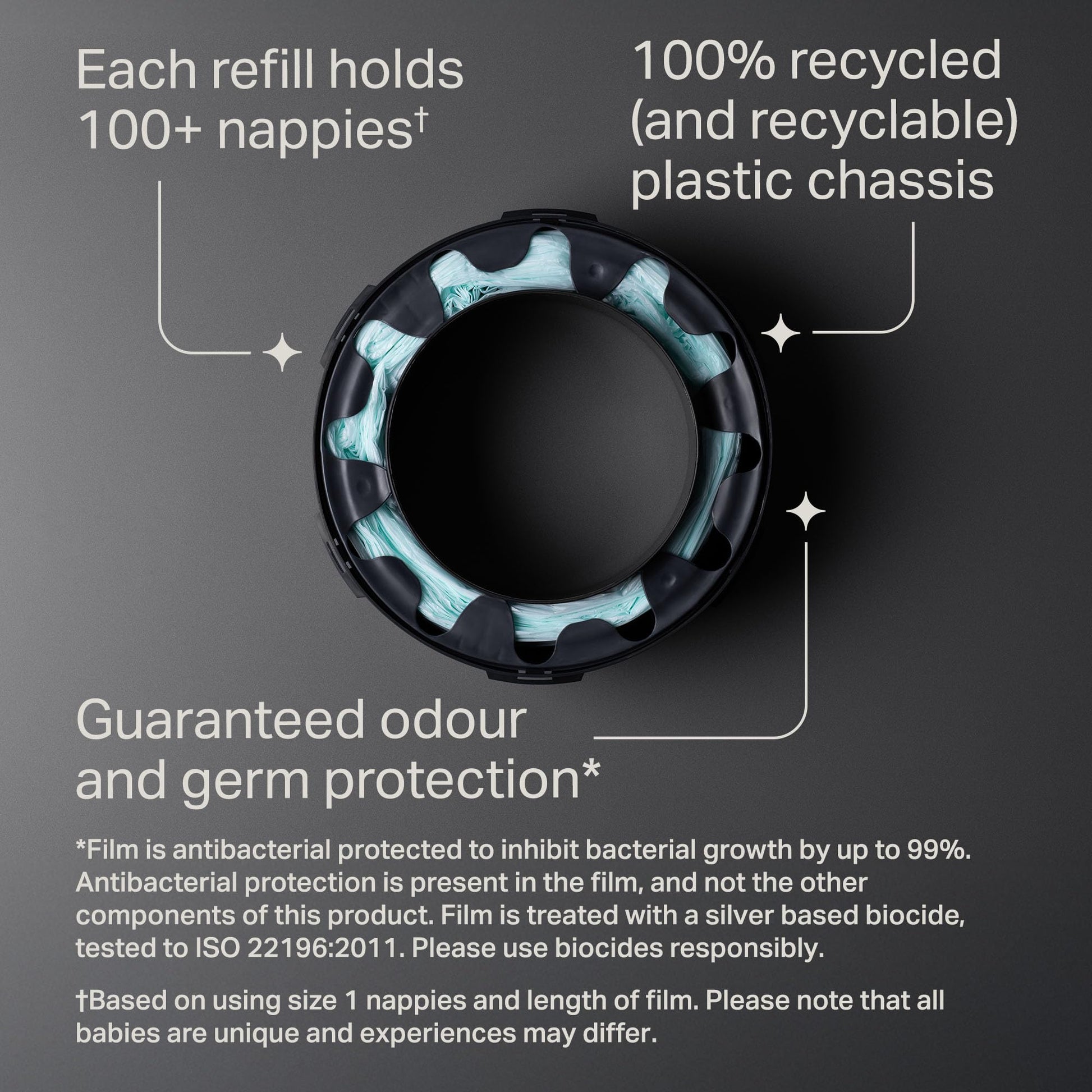 Tommee Tippee Twist & Click täitekassett aitab hoida kodu puhtana ja lõhnadevabana, pakkides iga määrdunud mähkme eraldi antibakteriaalsesse kilesse. Mitmekihiline GREENFILM kile neutraliseerib ebameeldivaid lõhnu ja hävitab kuni 99% kahjulikest bakteritest, pakkudes vanematele meelerahu. Kassett sobib kõigi Tommee Tippee Twist & Click ja Sangenic TEC mähkmekonteineritega. Ühe kassetiga saab ära visata ligikaudu kuu aja jagu mähkmeid (sõltuvalt mähkmete suurusest ja kasutamise sagedusest).
