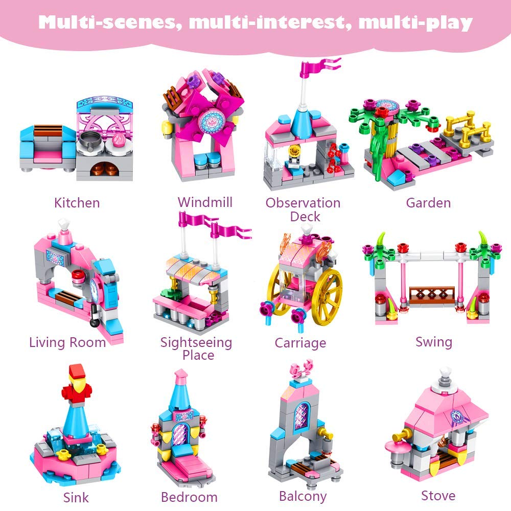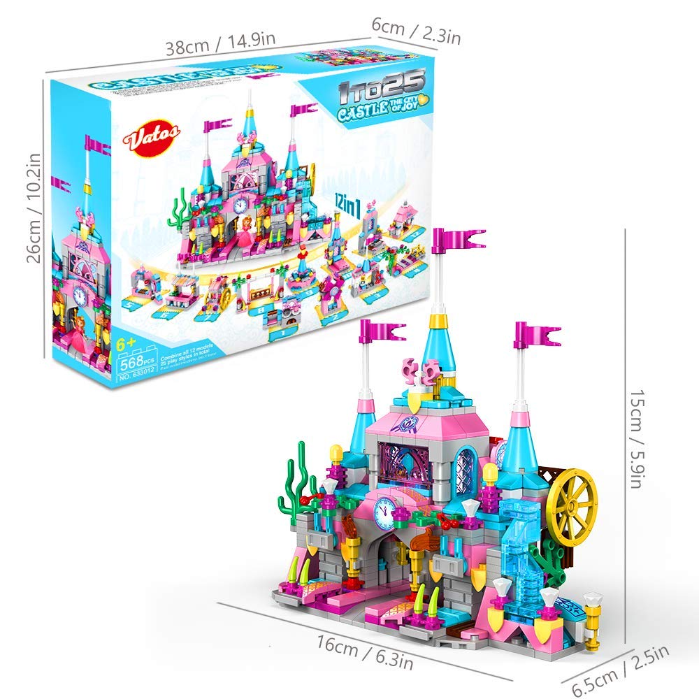 VATOS 568-osaline printsessilossi ehitusklotside komplekt, 25 mudelit, 6–12 a lastele